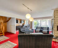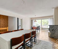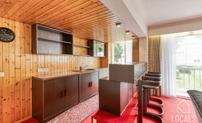 Het appartement is opgedeeld in 2 verdiepingen. Op de eerste verdieping kan je een ruime inkomhal terugvinden met een leuke leefruimte, waar je gasten gemakkelijk kan ontvangen. Dankzij het ingebouwde barmeubel, kan je samen met je bezoekers genieten van een lekker glaasje!