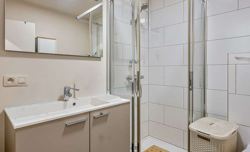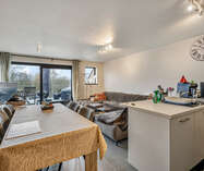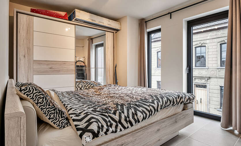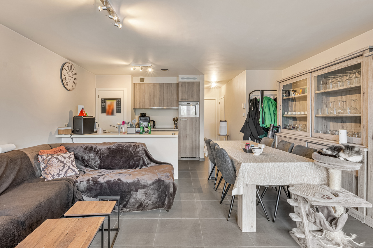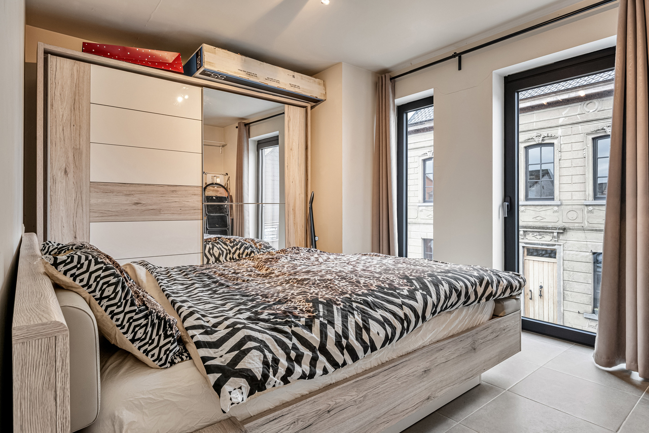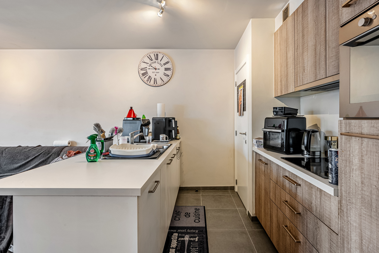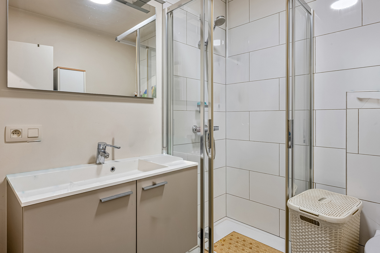 Het appartement bevat 1 slaapkamer, een lichtrijke leefruimte, een geïnstalleerde keuken, badkamer met wastafel en douche, een berging, afzonderlijk toilet en een ruim terras achteraan.
