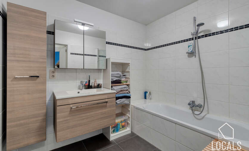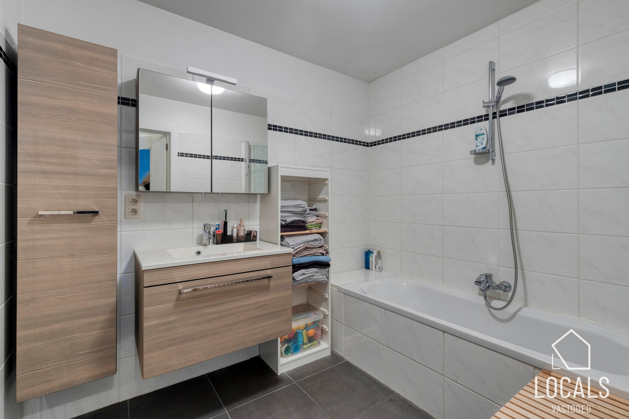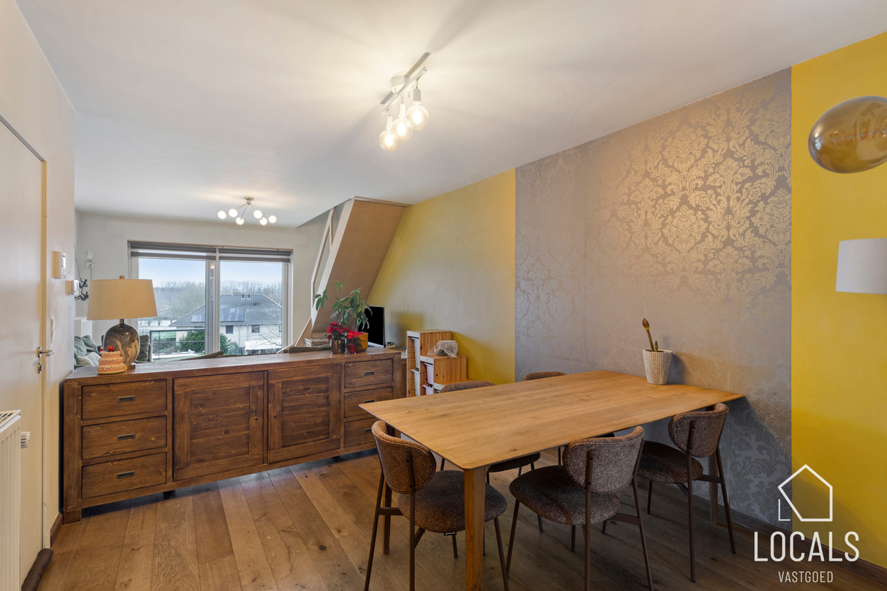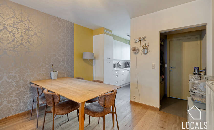 Enkele troeven: gunstig EPC-label B, conforme elektriciteit, zonnepanelen, 2 slaapkamers en een extra zolderkamer, een onderhoudsvriendelijke tuin met verzicht op groen, ruime garage, veel bergruimte, ventilatiesysteem in de volledige woning en twee privatieve staanplaatsen voor de deur. De woning is bovendien afgewerkt met kwaliteitsvolle materialen, waaronder parketvloeren.