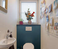 Op de tweede verdieping bevinden zich twee slaapkamers, een nachthal en een badkamer. Hier zijn ook elektrische rolluiken en een apart toilet voorzien.