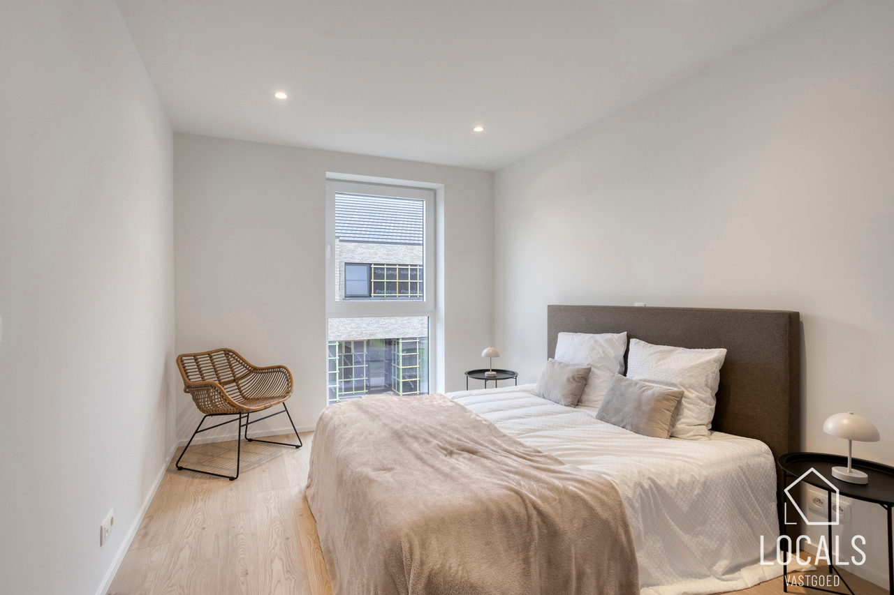 Alle appartementen omvatten: 2 of 3 slaapkamers, voldoende bergruimte & veel lichtinval door de grote glaspartijen. Daarnaast beschikt elke appartement o.a. over vloerverwarming met warmtepomp (lucht/water), zonnepanelen, een regenwaterput, hoogrendementsbeglazing, ventilatiesysteem D. Het gebouw is voorzien van parkeerplaatsen, garageboxen en fietsparkings.
