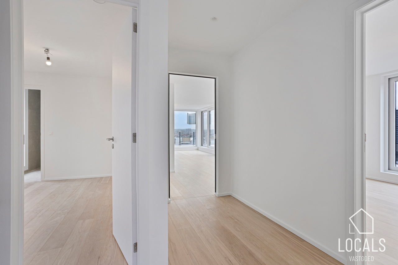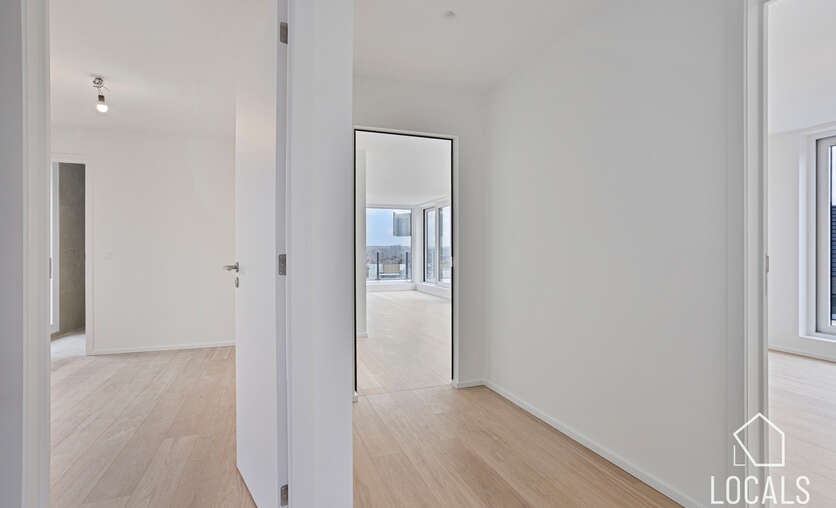 Alle appartementen omvatten: 2 of 3 slaapkamers, voldoende bergruimte & veel lichtinval door de grote glaspartijen. Daarnaast beschikt elke appartement o.a. over vloerverwarming met warmtepomp (lucht/water), zonnepanelen, een regenwaterput, hoogrendementsbeglazing, ventilatiesysteem D. Het gebouw is voorzien van parkeerplaatsen, garageboxen en fietsparkings.
