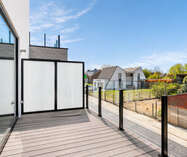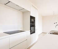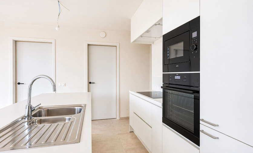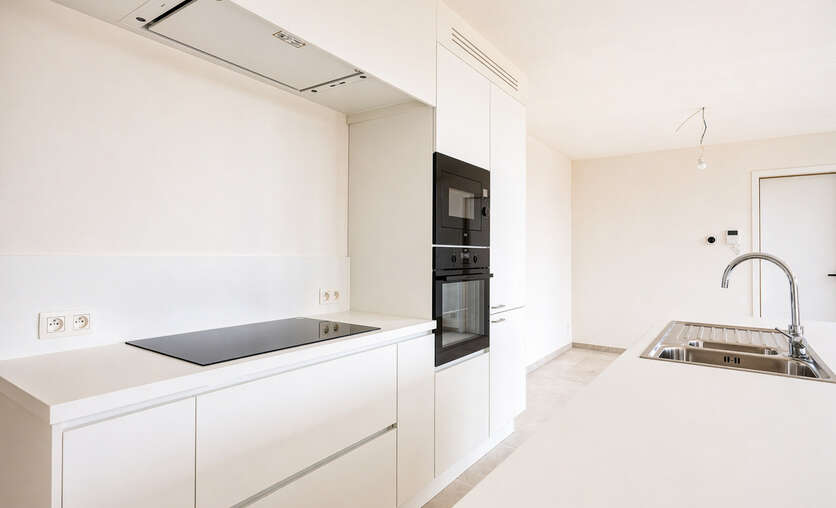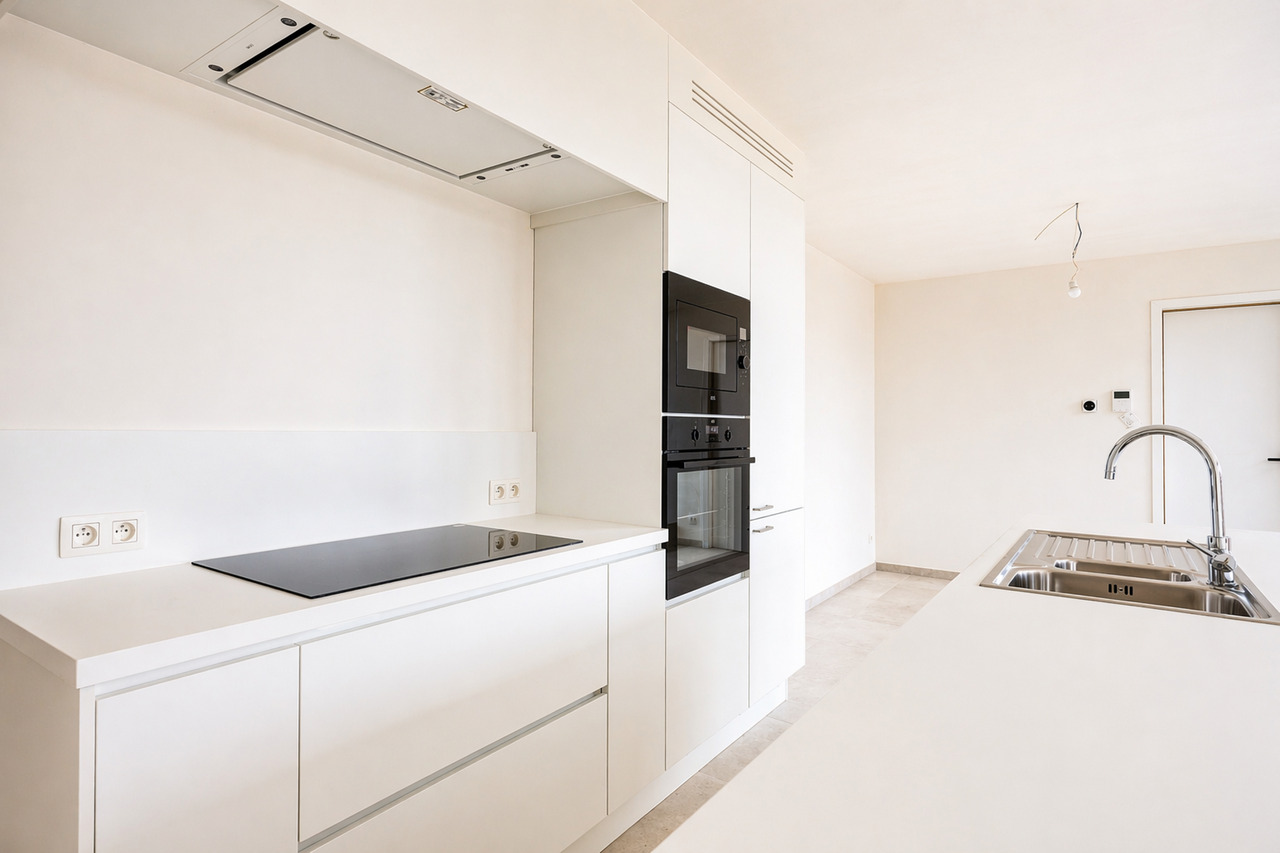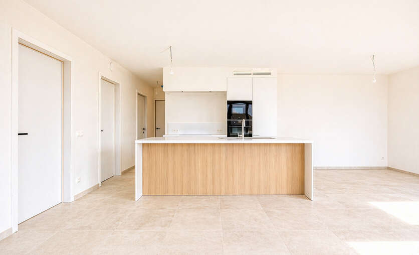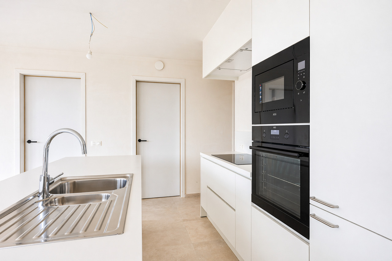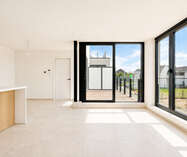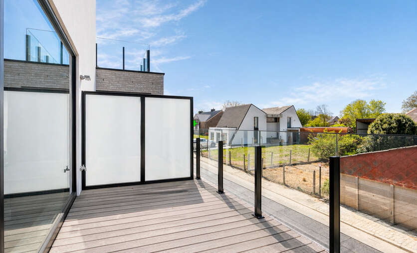 Deze kleinschalige residentie met slechts zeven appartementen combineert een moderne architectuur met een uitzonderlijk wooncomfort. De grote raampartijen en de elegante glazen balustrades zorgen voor een overvloed aan natuurlijk licht, waardoor elke leefruimte een open, luchtig en uitnodigend karakter krijgt. Het geheel voelt ruim, helder en eigentijds aan, met een sterke focus op woonkwaliteit.