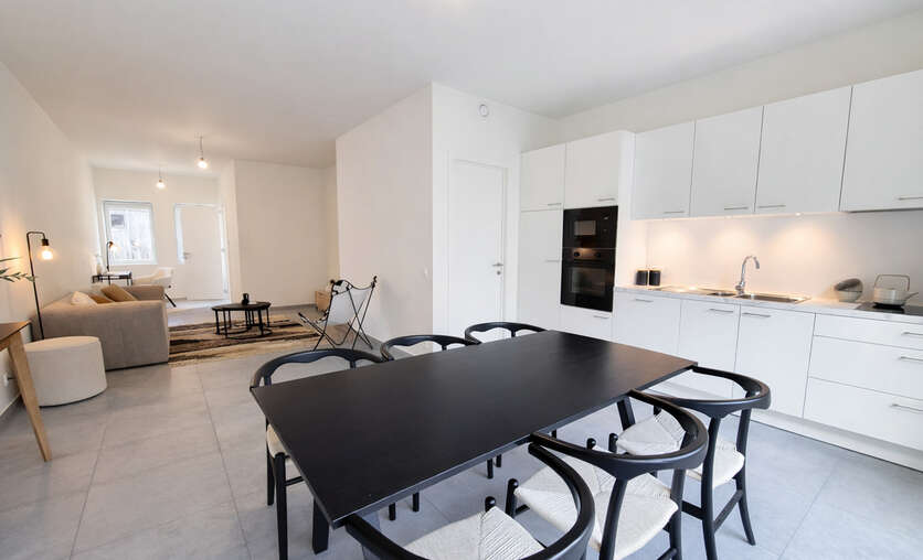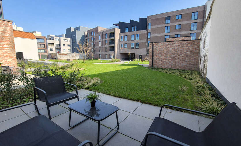 Het terras vormt een heerlijke buitenplek waar je kan ontspannen met zicht op de verzorgde binnentuin, een rustige groene omgeving midden in de stad. Deze maisonette biedt een unieke combinatie van ruimte, functionaliteit en een aangename woonbeleving — een ideale thuisbasis voor wie op zoek is naar comfort in Aalst.