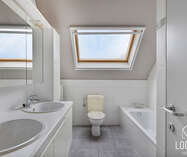 Op de bovenverdieping bevinden zich drie slaapkamers en een mooi ingerichte badkamer met douche, bad, toilet en lavabomeubel.