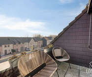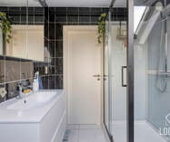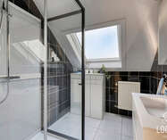 Bij binnenkomst wordt u verwelkomd in een ruime en lichtrijke leefruimte, die naadloos overgaat in een open keuken. Aanpalend bevindt zich een praktische berging met aansluiting voor een wasmachine en voldoende opslagruimte. Grote raampartijen zorgen voor een overvloed aan natuurlijk licht, wat de leefruimte een warme en uitnodigende sfeer geeft. De 1ste badkamer is uitgerust met een douche, daarnaast vindt u twee volwaardige slaapkamers en een apart gastentoilet. Deze slimme indeling maakt de duplex zowel functioneel als elegant.