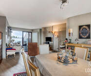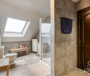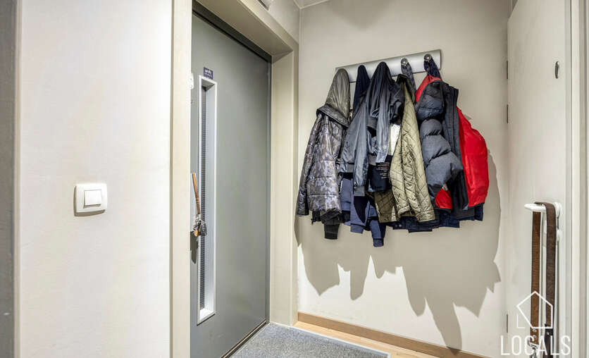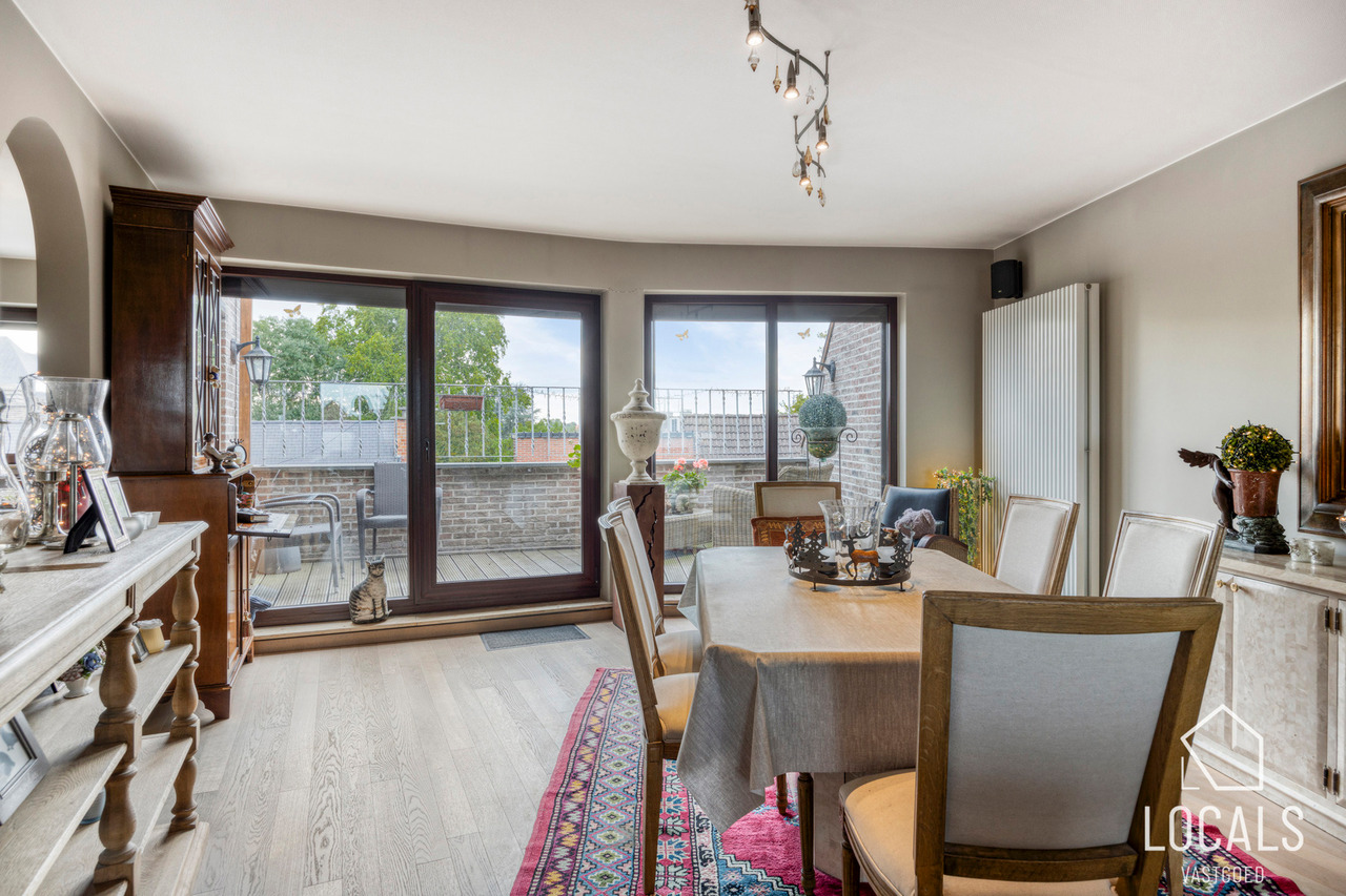 De duplex is afgewerkt met kwaliteitsvolle materialen, waaronder een massieve parketvloer. Bovendien beschikt het gebouw over een lift met persoonlijke toegangssleutel, die uitsluitend toegang geeft tot het verdiep van dit duplexappartement, een extra troef op vlak van privacy.