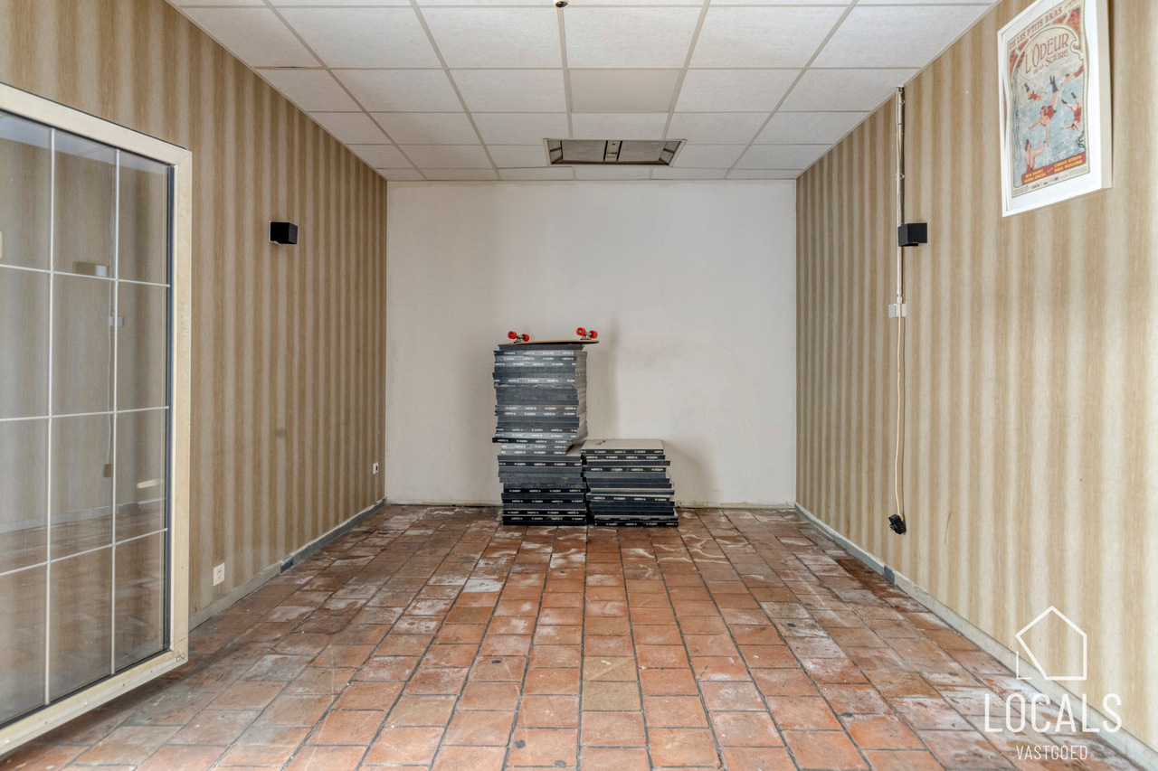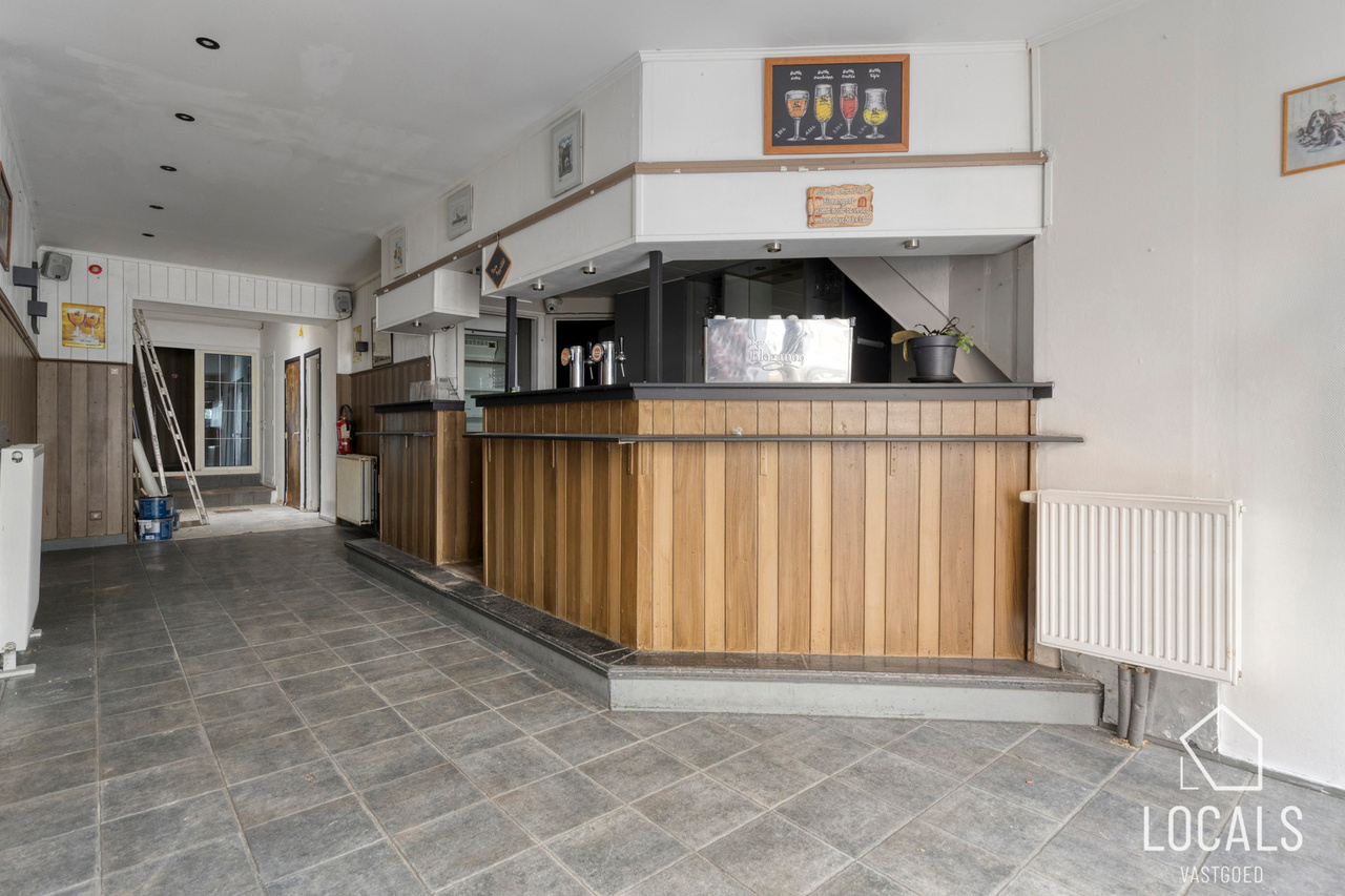 Het handelsgelijkvloers, momenteel ingericht als café, kan mits een kleine opfrissing eenvoudig heringericht worden. Bij het binnenkomen vindt u de caféruimte met open bar, aparte mannen- en vrouwentoiletten, toegang tot de kelder en achteraan een extra polyvalente ruimte. Elektriciteit is conform, het pand is energiezuinig en voorzien van centrale verwarming op aardgas. Kortom, een interessante opbrengsteigendom op een strategische locatie. Interesse? Maak snel uw afspraak via 054 23 53 83 of info@localsvastgoed.be.