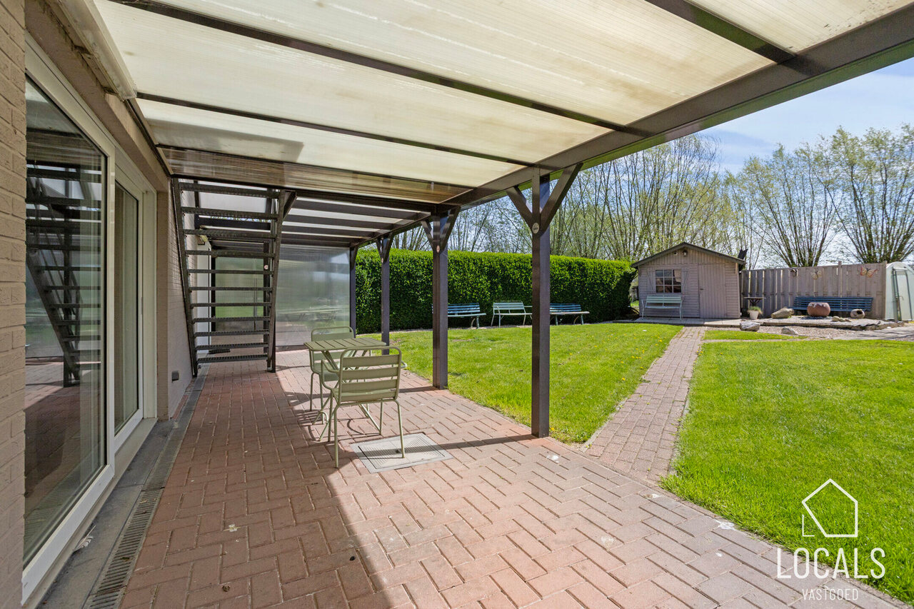 Buiten is het aangenaam vertoeven, met een verzorgde tuin, een overdekt terras en voldoende parkeermogelijkheden.