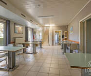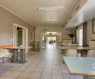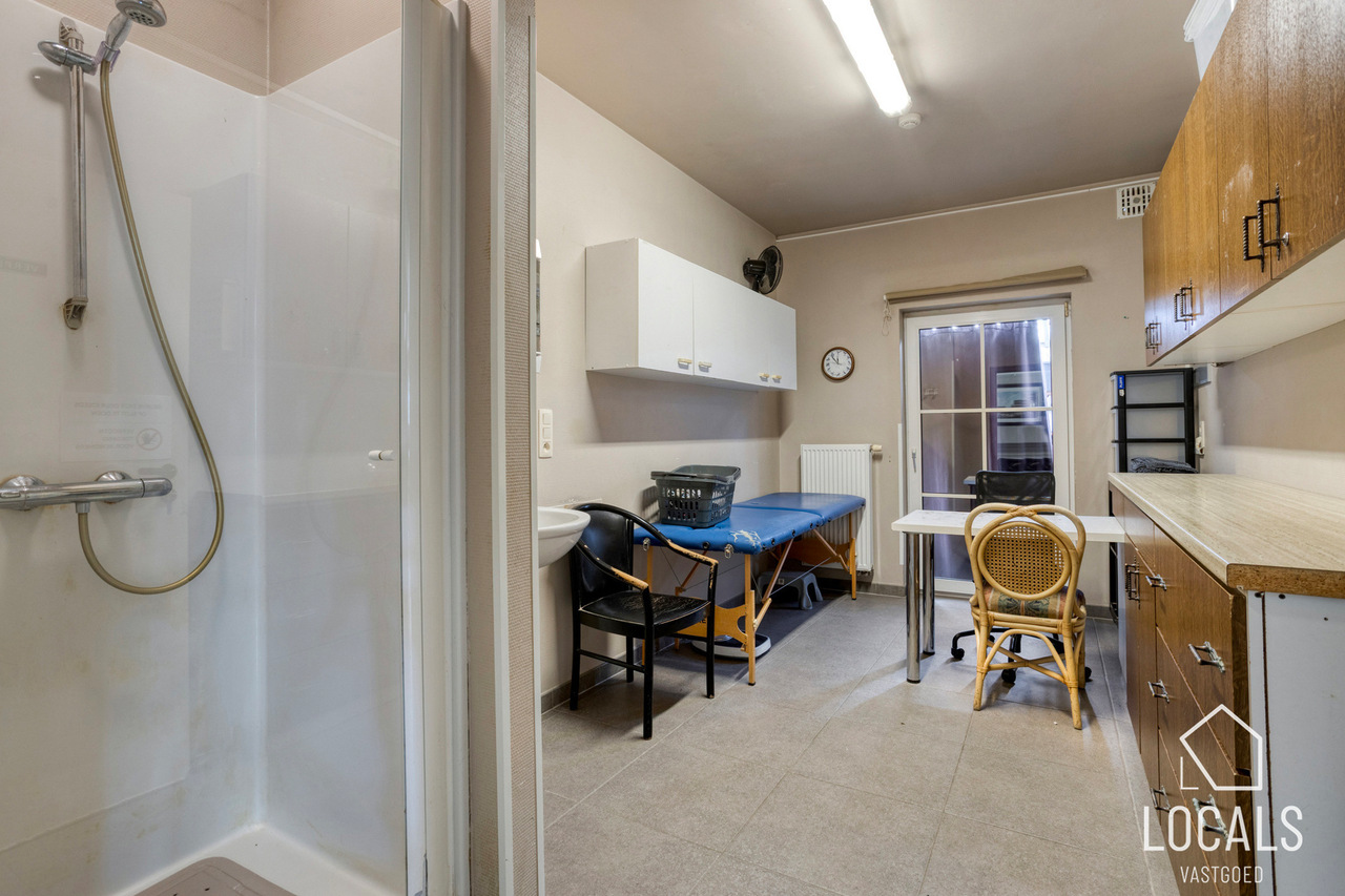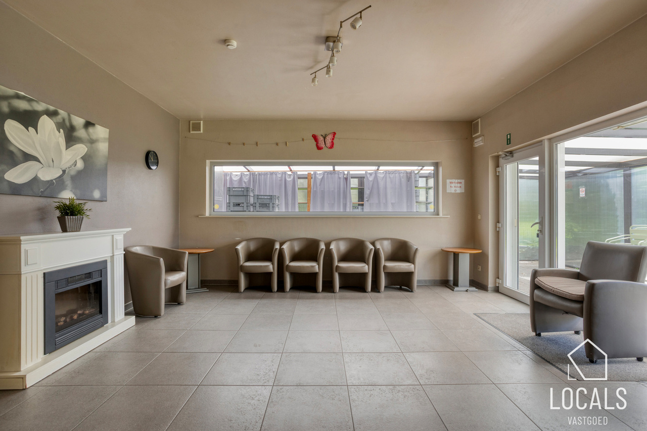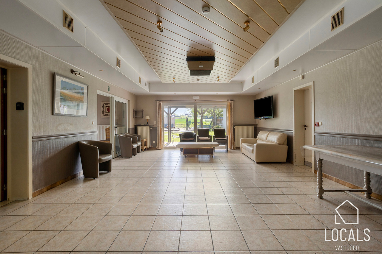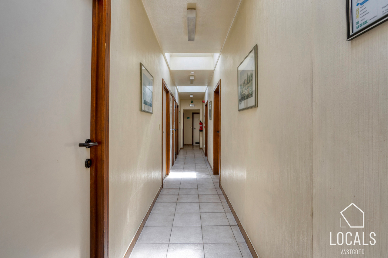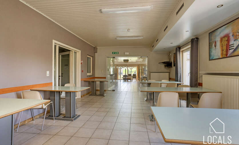 Met een bewoonbare oppervlakte van ca. 766 m² biedt het gebouw een bijzonder ruime en functionele indeling. Het beschikt over 24 slaapkamers, een grootkeuken, een verpleegpost, een ruime refter, een aangename ontspanningsruimte en een bureelgedeelte vooraan met aparte vergaderruimte — ideaal voor administratie, overleg en begeleiding.