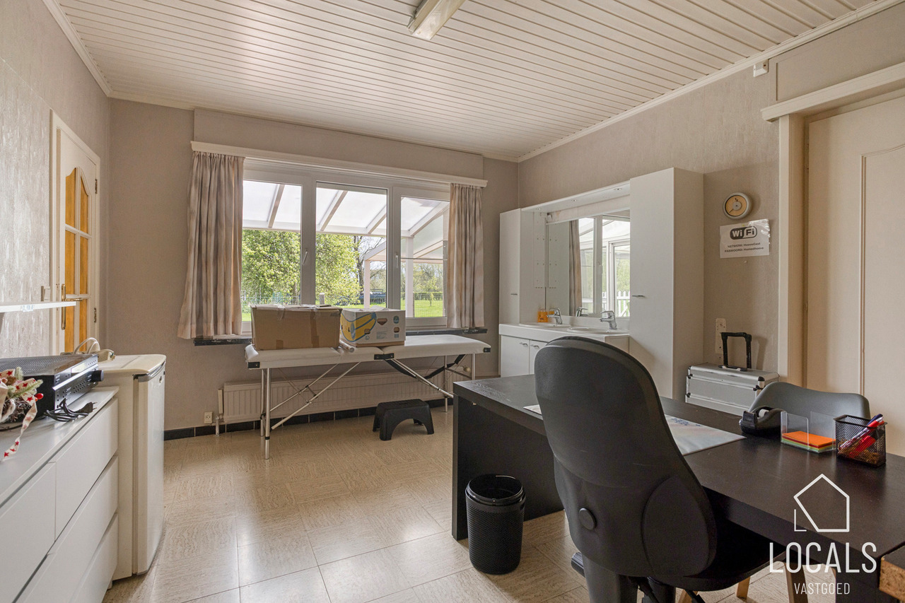 Deze uitzonderlijke eigendom bevindt zich in agrarisch gebied op een perceel van 13 are, omgeven door een groene en rustige setting. De locatie leent zich dan ook uitstekend voor een opvangtehuis met een zorggericht aspect.