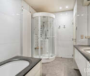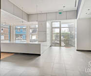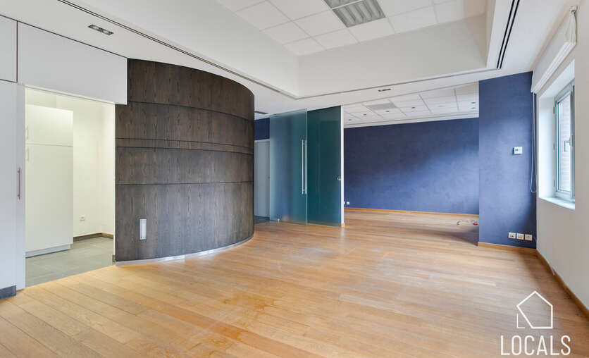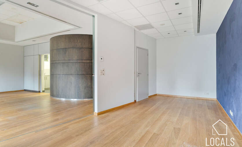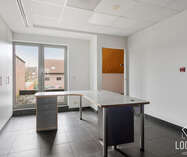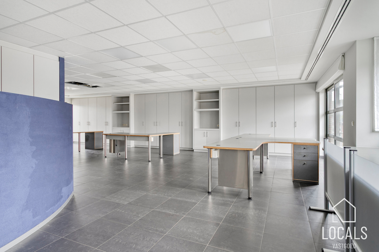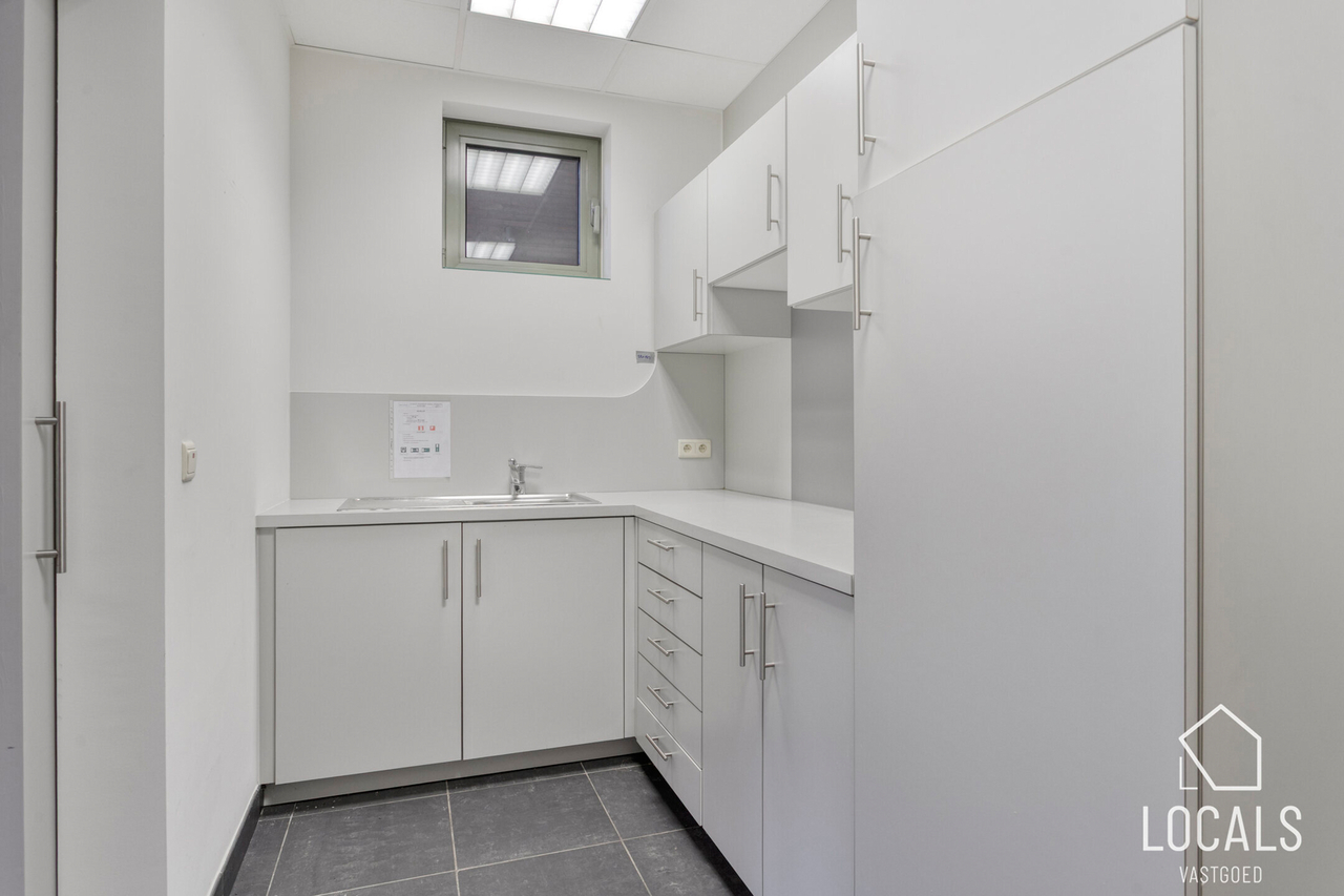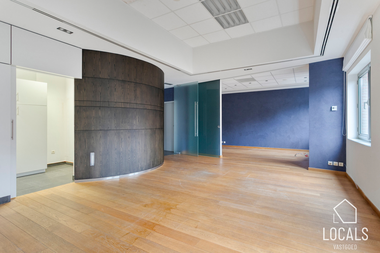 Op het gelijkvloers bevindt zich een handelsruimte, momenteel ingericht als kantoorruimte, dit met aparte bureaus, keuken, terras en toilet. De verdieping werd momenteel samengevoegd als kantoorruimte, dit kan terug worden opgesplitst naar 2 appartementen, telkens met 2 slaapkamers en een eigen terras. Op de 2e verdieping bevindt zich een ruim appartement met 2 slaapkamers en terras. Diverse staanplaatsen achter het gebouw. Lift en dubbele beglazing aanwezig.