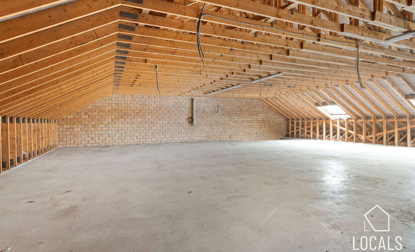 Het atelier heeft een netto-oppervlakte van 267m² en heeft eveneens een kelder en zolder van elk 267m² netto.