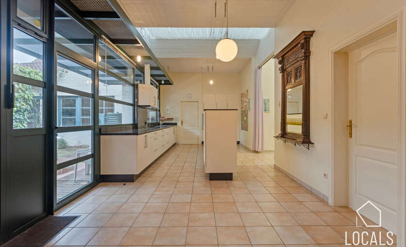 De eigendom heeft enorm veel ruimte en geniet verschillende gebruiksmogelijkheden. Er is een garage voor 2+ wagens alsook een grote berging. Palend aan de woning is een atelier van meer dan 100m² alsook een bijhorend bureau. Ideaal voor een professionele activiteit/kantoor/praktijk/sport (dansschool, fitness, …)/stockage/… of simpelweg een hobby die veel plaats vraagt. Deze oppervlakte kan eventueel gecombineerd worden met de woonfunctie, ideaal als kangoeroewoning.