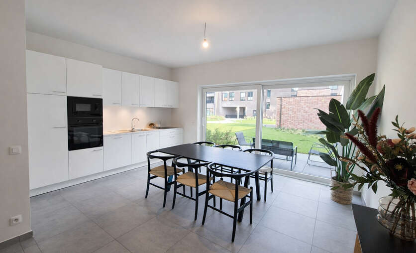Het terras vormt een heerlijke buitenplek waar je kan ontspannen met zicht op de verzorgde binnentuin, een rustige groene omgeving midden in de stad. Deze maisonette biedt een unieke combinatie van ruimte, functionaliteit en een aangename woonbeleving — een ideale thuisbasis voor wie op zoek is naar comfort in Aalst.