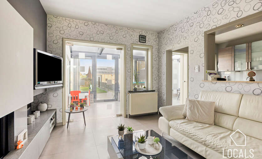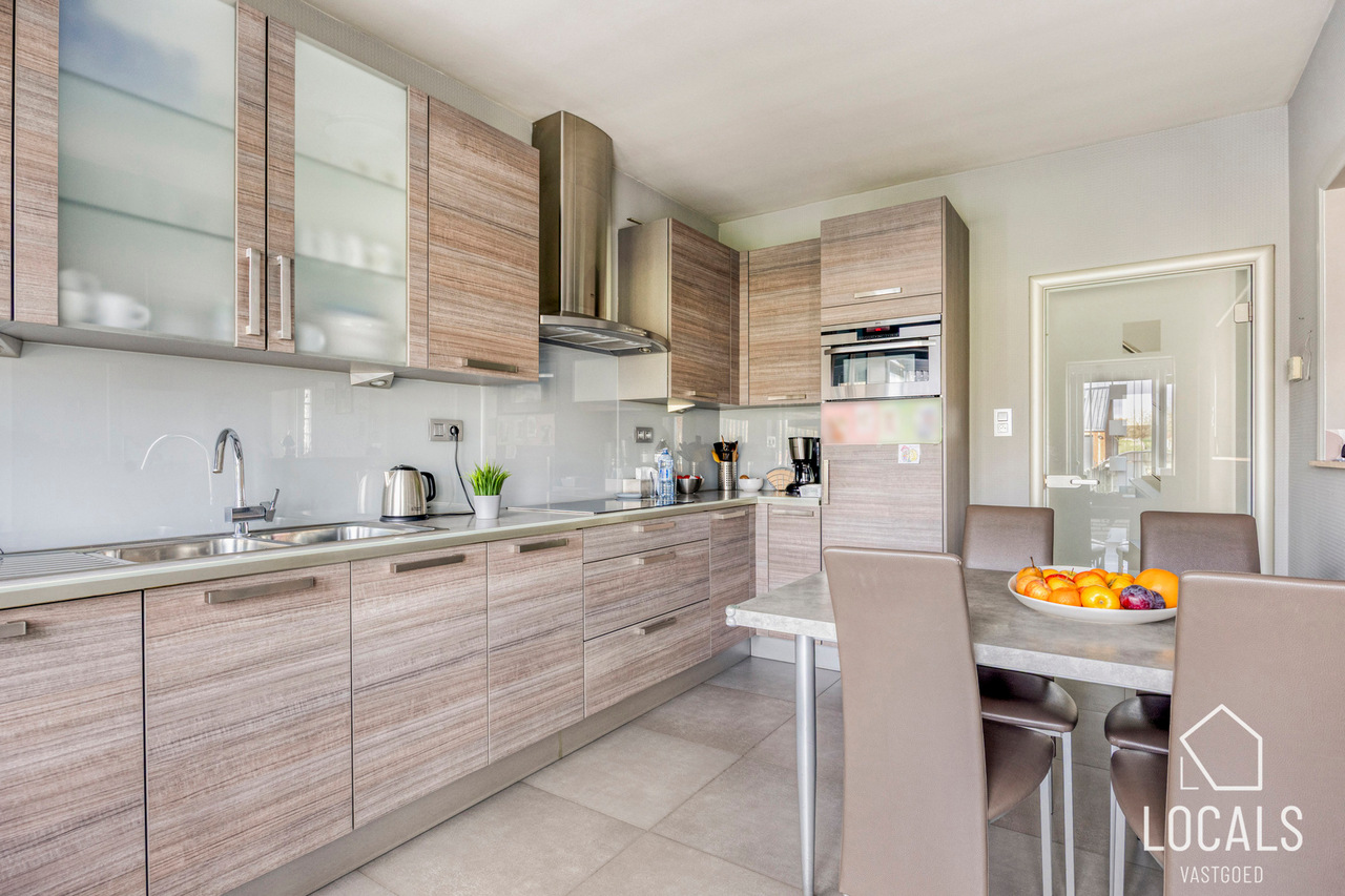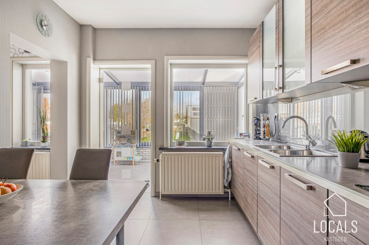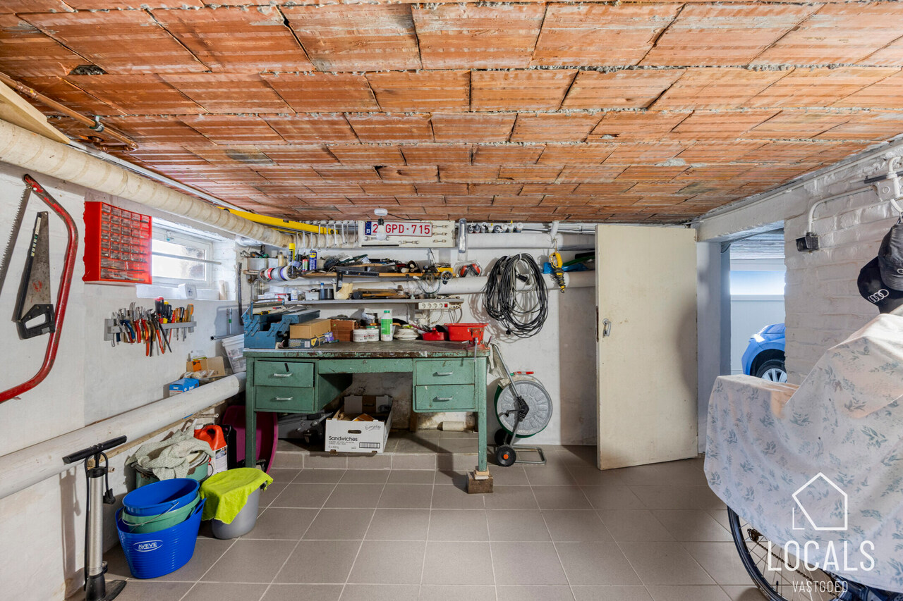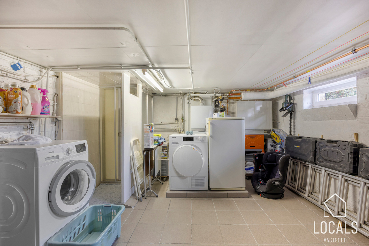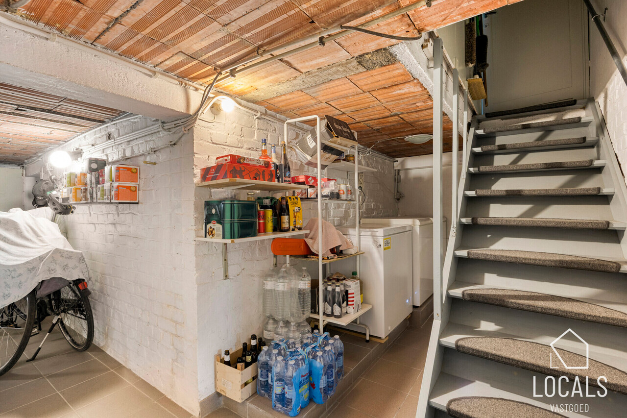Op het gelijkvloers vindt u een apart gastentoilet en een inkomhal met vooraan de eetruimte die ook kan ingericht worden als bureauruimte of zelfs extra slaapkamer. De leefruimte sluit naadloos aan op de volledig uitgeruste keuken, voorzien van inbouw toestellen. Verder is er een veranda, een badkamer, een gezellig terras en een diepe tuin waar u in alle rust kunt genieten. De woning is volledig onderkelderd.