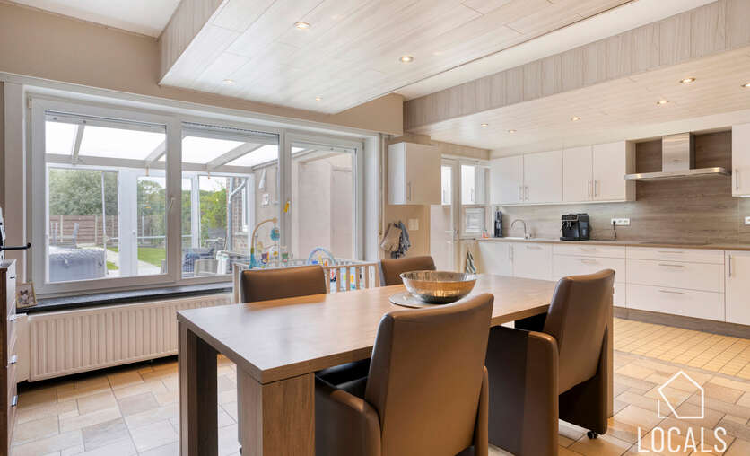 Op zoek naar een instapklare en ruime woning met zuidwest gerichte tuin, garage en 4 slaapkamers? Dan is deze goed gelegen en gezellige woning vast iets voor jou. Op het gelijkvloers tref je de grote leefruimte, keuken met zicht op de tuin, een lichtrijke veranda, toilet, bergruimte en een inpandige garage. Op de verdieping is er een nachthal, badkamer (met ligbad + douche, toilet & wastafel), 3 slaapkamers, de vaste trap naar de zolder geeft toegang tot de 4de slaapkamer. Zuidwest georiënteerde tuin, totale grondoppervlakte 3a23ca en bewoonbare oppervlakte 233m2. Nieuwe keuken (2023), epc 327 kWh/m² - label D, dubbele beglazing, centrale verwarming gas en pelletkachel. Goed gelegen, dit op slechts 200 m van het station Iddergem. Op slechts 7km oprit E40 Affligem en 10km oprit E40 Aalst. Veel parking nabij. G & P-score: B. Voor meer informatie en/of bezichtiging: 054 23 53 83 of info@localsvastgoed.be