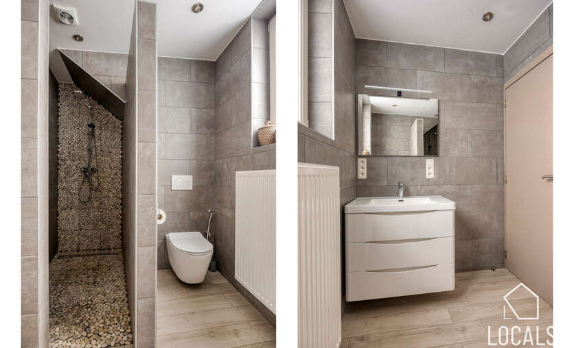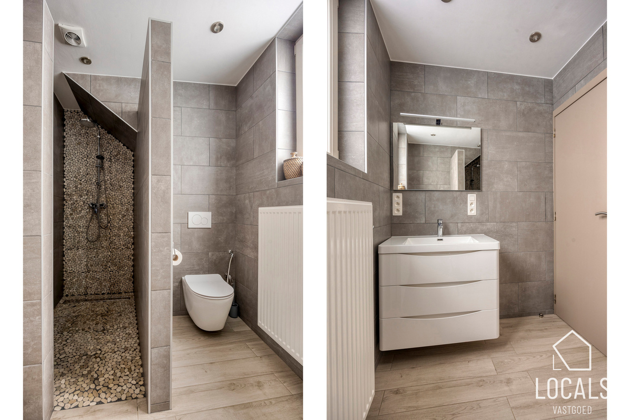 Op de bovenverdieping wachten drie volwaardige slaapkamers en een moderne badkamer, uitgerust met een inloopdouche/lavabomeubel en een tweede toilet. De zolder biedt nog extra stockage en maakt het plaatje helemaal compleet. Deze woning combineert een doordachte indeling met een hoogwaardige afwerking, en vormt zo de ideale thuis voor wie op zoek is naar een instapklare woning op een centrale locatie.