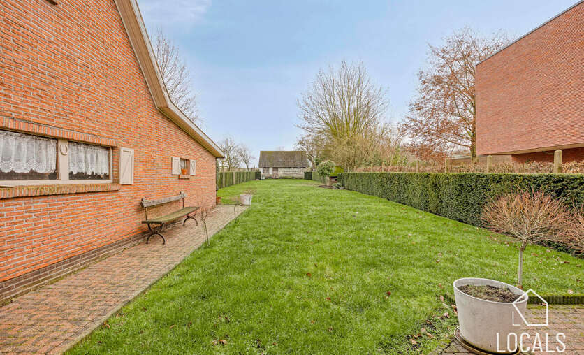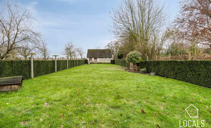 De grote troef van deze eigendom is ongetwijfeld de diepe tuin met bijgebouwen én de achterliggende weide, ideaal voor dierenliefhebbers, hobbyisten of wie gewoon wil genieten van maximale privacy en open ruimte.