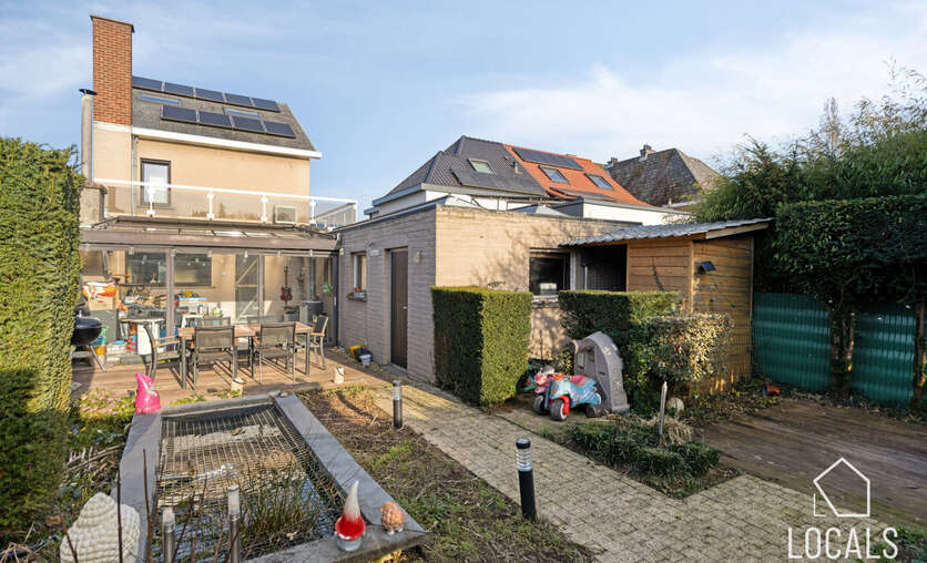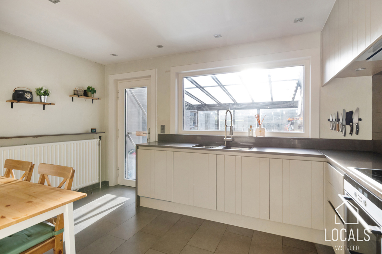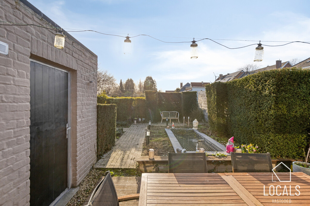 In een rustige straat in het charmante Haaltert bevindt zich deze verzorgde halfopen bebouwing, die rust en bereikbaarheid perfect combineert. Ondanks de rustige ligging bevinden alle dagelijkse voorzieningen zich op wandelafstand. Bij aankomst valt meteen de ruime oprit met garage op, die voldoende parkeergelegenheid biedt. Via de inkomhal met gastentoilet betreedt u de lichtrijke ruime leefruimte van maar liefst 50m², waar het aangenaam wonen en ontspannen is. Aansluitend bevindt zich de volledig uitgeruste stijlvolle keuken, vanwaar u toegang heeft tot de kelder — ideaal voor extra stockage. Op het gelijkvloers vinden we daarnaast nog een gezellige veranda die uitkijkt op de zonnige tuin. Deze buitenruimte vormt een heerlijke plek om op mooie dagen te genieten van rust en privacy.