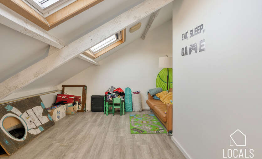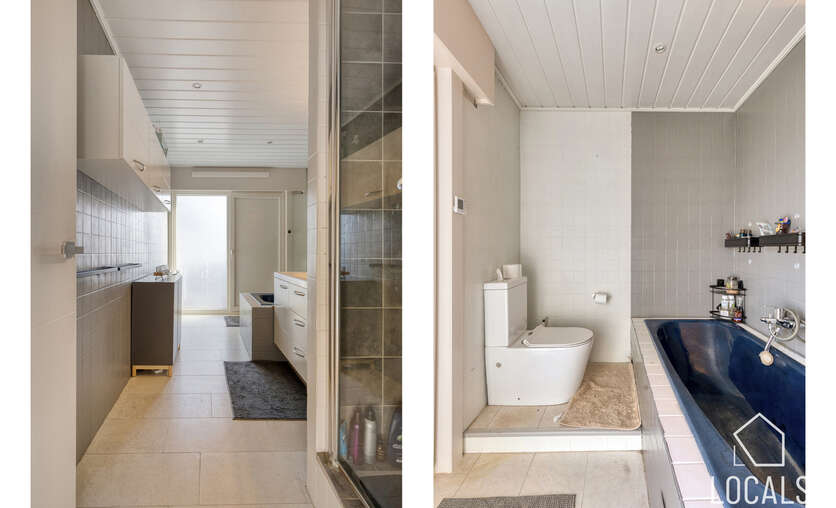 De eerste verdieping beschikt over twee ruime slaapkamers die voorzien zijn van airconditioning, een dressing en een badkamer met tweede toilet/ligbad en douche. Op de tweede verdieping bevinden zich nog drie bijkomende slaapkamers, waardoor de woning in totaal vijf slaapkamers telt en dus perfect geschikt is voor grotere gezinnen.