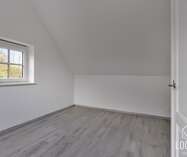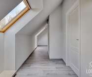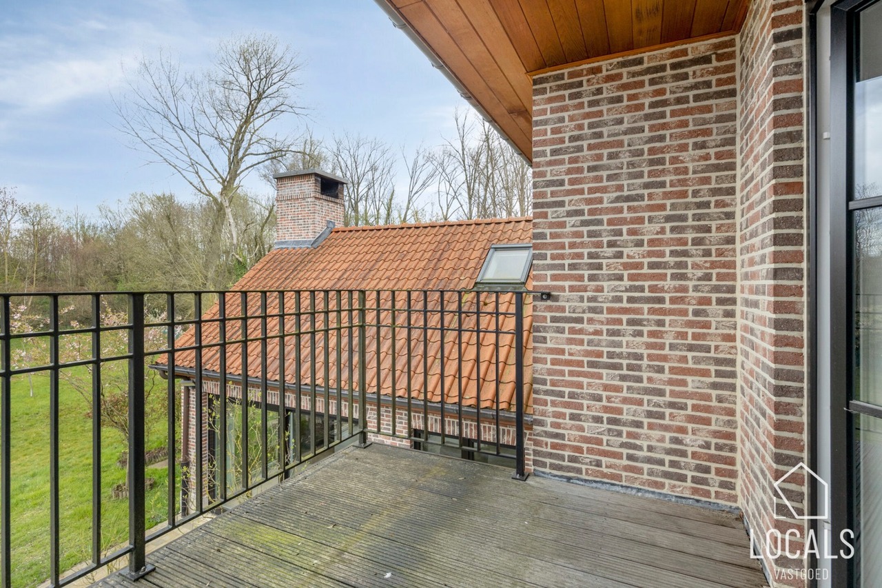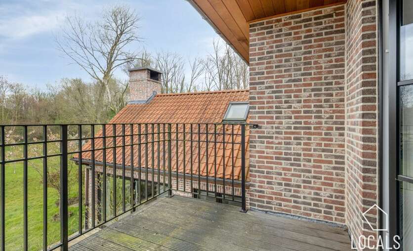 Op de eerste verdieping: nachthal, slaapkamer met zolderkamer, tweede slaapkamer en derde slaapkamer met terras en groen uitzicht, ensuite badkamer (ligbad en dubbele lavabo) en aparte badkamer (douche, toilet en lavabo). Tweede verdieping: vijfde slaapkamer en bergruimte.