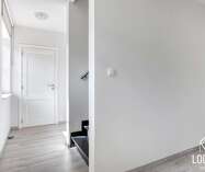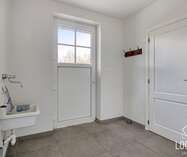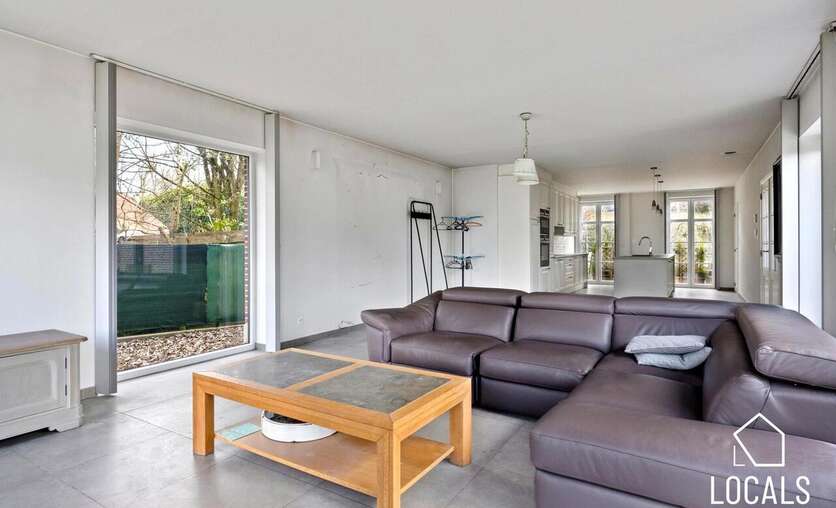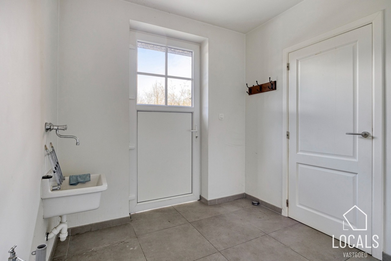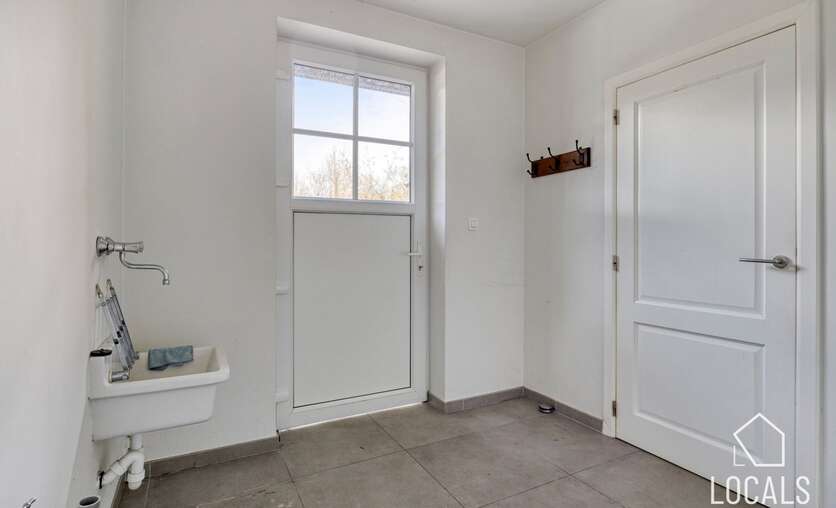 De woning omvat een inkomhal met gastentoilet, lichtrijke woonkamer met ruime open keuken, wasplaats en bureau/slaapkamer op het gelijkvloers. Volledig onderkelderd met veel opslagruimte.