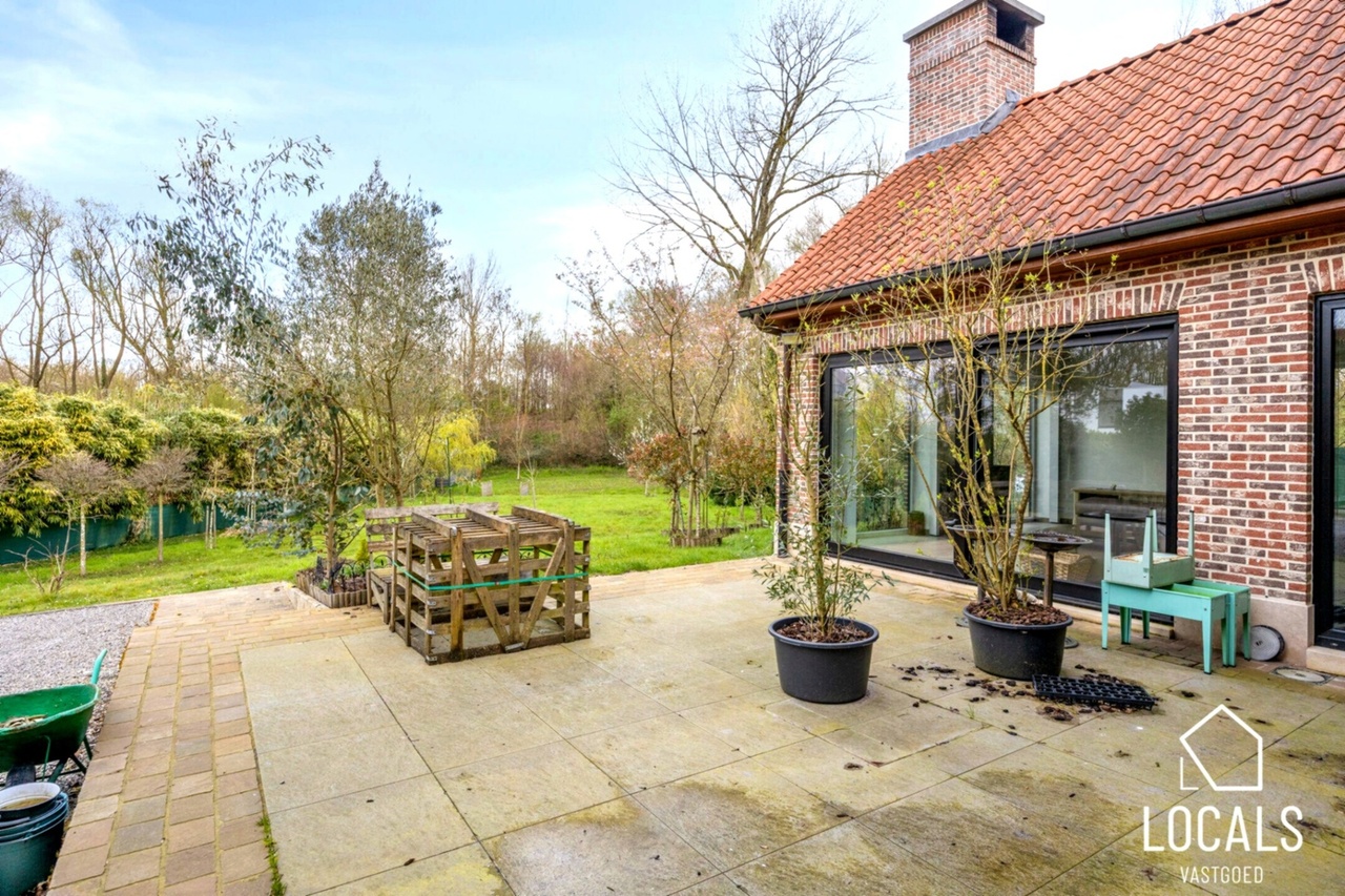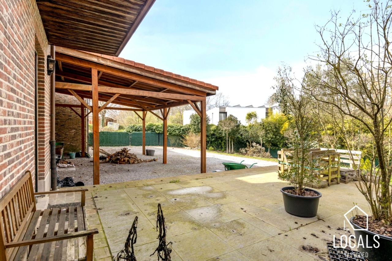 Gelegen op een perceel van 20a 99ca met grote tuin en zicht op natuur, bereikbaar via naastgelegen weg. Meerdere staanplaatsen en carport aanwezig.