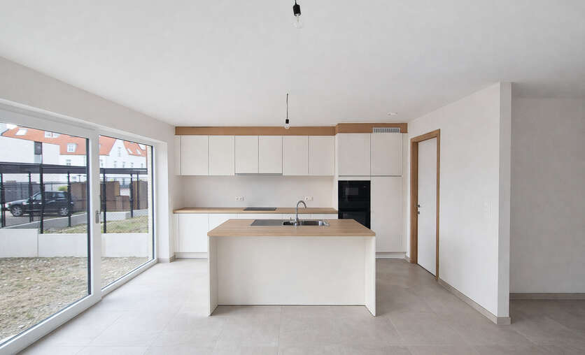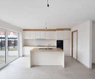 Op de gelijkvloerse verdieping geniet je van een open en lichtrijke leefruimte met geïntegreerde keuken en een gezellige zithoek. Daarnaast is er een praktische, afzonderlijke berging voorzien.