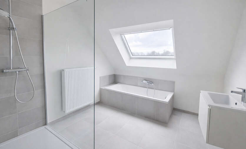 Op de verdieping bevinden zich drie volwaardige slaapkamers, ideaal voor gezinnen of voor wie graag extra ruimte heeft voor een bureau of hobbykamer. De badkamer is functioneel ingedeeld en biedt alle comfort, terwijl een afzonderlijk toilet extra praktisch is. De nachthal verbindt alle ruimtes op een logische en aangename manier.