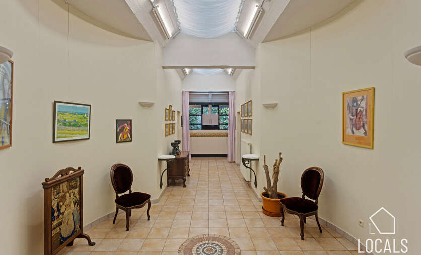 De eigendom heeft enorm veel ruimte en geniet verschillende gebruiksmogelijkheden. Er is een garage voor 2+ wagens alsook een grote berging. Palend aan de woning is een atelier van meer dan 100m² alsook een bijhorend bureau. Ideaal voor een professionele activiteit/kantoor/praktijk/sport (dansschool, fitness, …)/stockage/… of simpelweg een hobby die veel plaats vraagt. Deze oppervlakte kan eventueel gecombineerd worden met de woonfunctie, ideaal als kangoeroewoning.