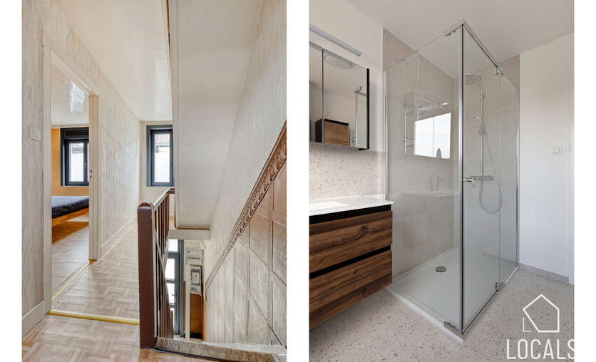 Op de eerste verdieping bevinden zich twee slaapkamers, evenals de vernieuwde badkamer die werd uitgerust met een tweede toilet, lavabo en inloopdouche. De zolder van ongeveer 30 m² is bereikbaar via een vaste trap en biedt, mits verdere afwerking, de mogelijkheid om ingericht te worden als een volwaardige master bedroom. De elektrische installatie is ook conform! Deze woning in Ninove biedt tal van mogelijkheden voor wie op zoek is naar een deels gerenoveerde woning met karakter, uitbreidingspotentieel en een gunstige ligging nabij alle voorzieningen. Bel 054 23 53 83 of mail naar info@localsvastgoed.be en kom deze unieke kans zelf ontdekken!