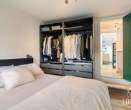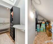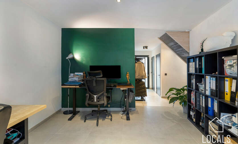 Bij het betreden van de woning komt u binnen in een verzorgde inkomhal met een apart gastentoilet en een praktische berging. Op het gelijkvloers bevindt zich een polyvalente ruimte die perfect kan dienen als bureau, praktijkruimte of extra slaapkamer. Aansluitend is er een eerste buitenruimte met een ruime buitenberging. Op de eerste verdieping bevindt zich de gezellige leefruimte met aansluitend de prachtige volledig uitgeruste keuken met kookeiland. Deze verdieping geeft ook uit op een tweede terras. De tweede verdieping herbergt de masterbedroom, een stijlvolle badkamer met inloopdouche/tweede toilet en lavabo, evenals een extra bureauruimte of babykamer. Via een uitklapbare trap is de zolder bereikbaar die perfect kan dienen als stockageruimte.