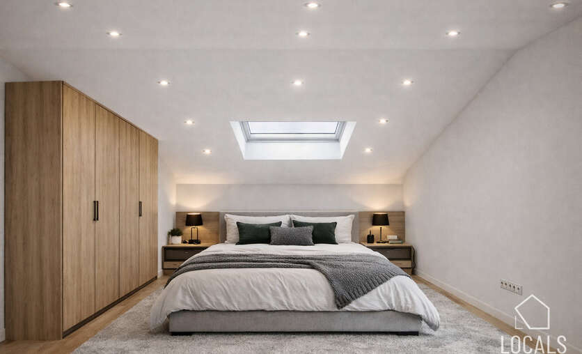 De eerste verdieping omvat drie volwaardige slaapkamers, dressing, badkamer voorzien van alle comfort en een tweede toilet. Daarnaast is er een vaste trap naar de zolderverdieping. Deze ruimte biedt de mogelijkheid om nog drie extra volwaardige slaapkamers te creëren, met oppervlaktes van respectievelijk 32m², 19m² en 13m².