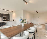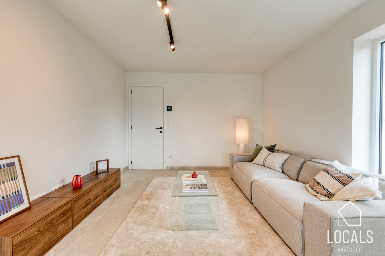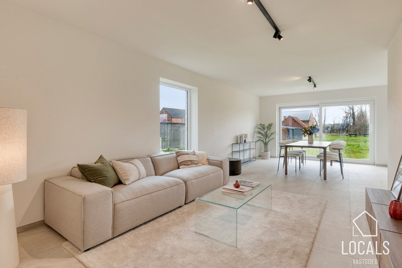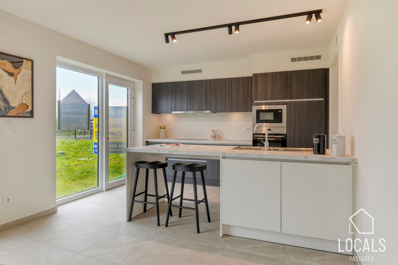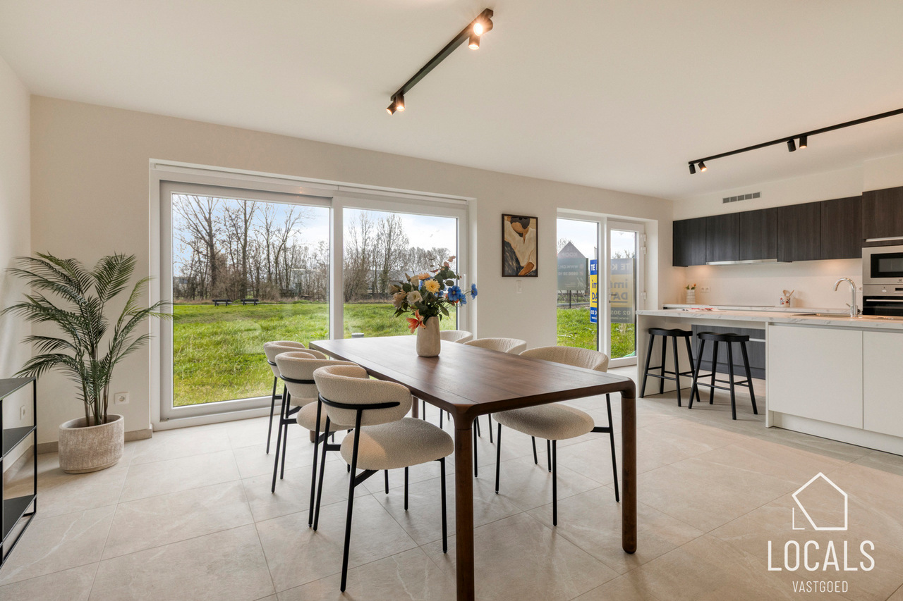 Het gelijkvloers is ontworpen als een open, lichte leefruimte waar functionaliteit en gezelligheid elkaar versterken. De keuken sluit mooi aan op de eethoek, waardoor koken en tafelen een vanzelfsprekende flow krijgen. De zithoek kijkt uit op de tuin en vormt een warme plek om te ontspannen. De inkomhal, het gastentoilet en de inpandige garage zorgen voor extra comfort en praktische meerwaarde in het dagelijkse leven.
