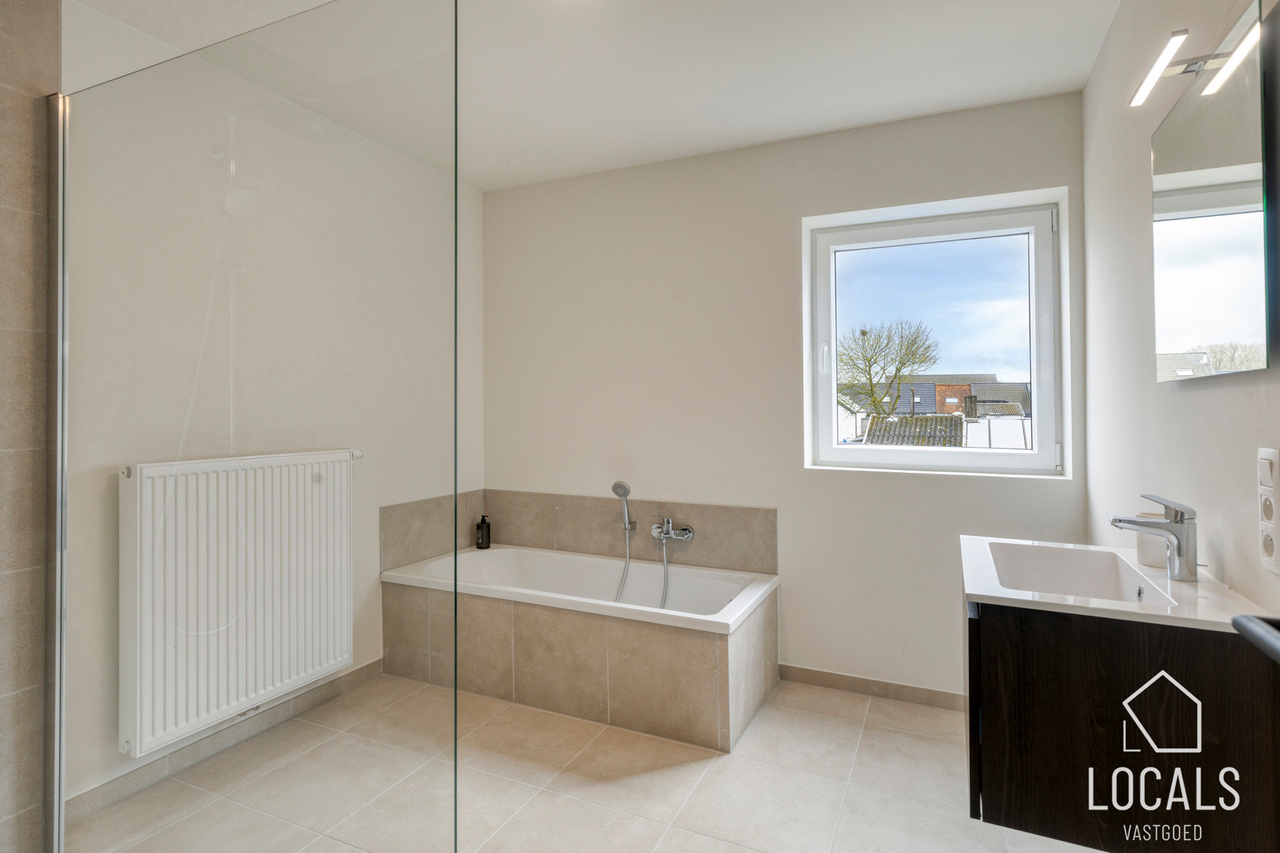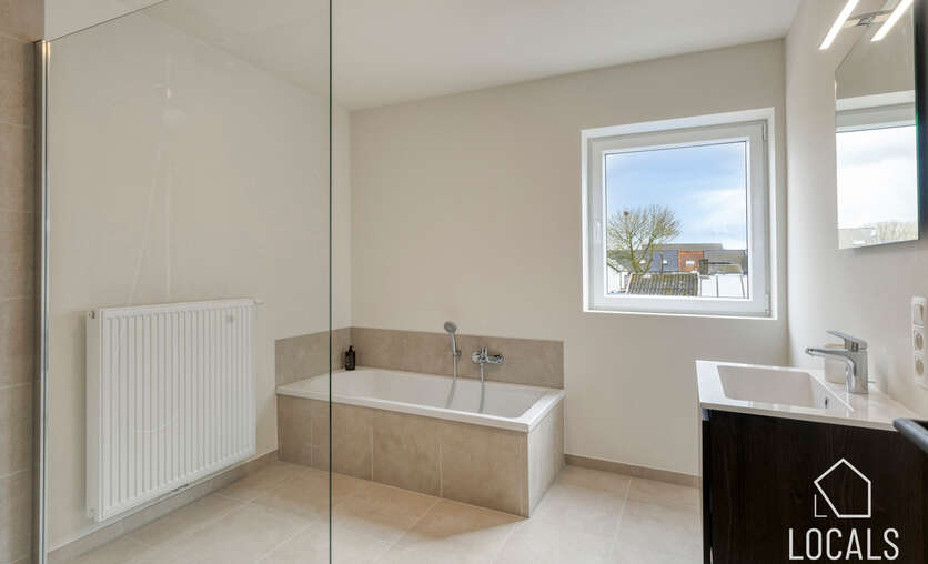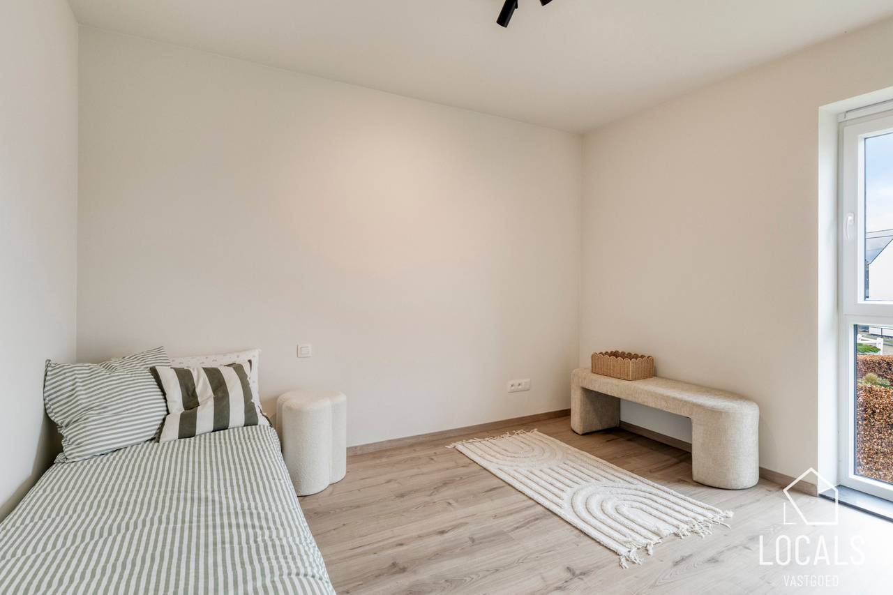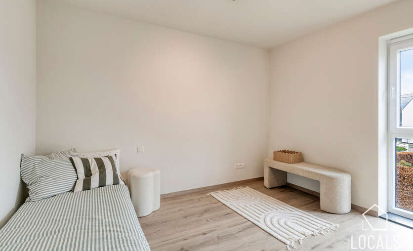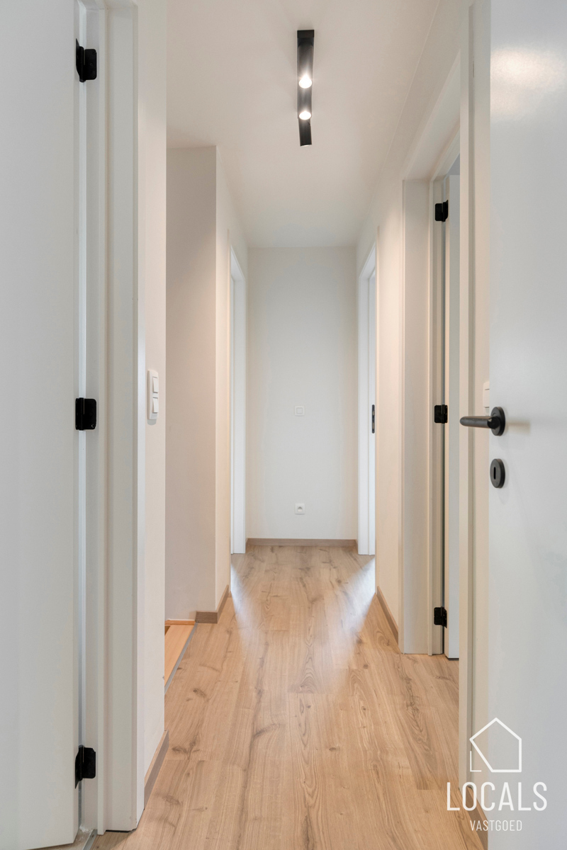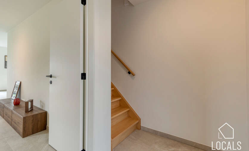 Op de verdieping bevinden zich drie ruime slaapkamers, ideaal voor gezinnen, thuiswerkers of wie graag een hobbykamer voorziet. De badkamer is logisch ingedeeld en biedt alle hedendaagse voorzieningen, terwijl een afzonderlijk toilet extra comfort garandeert. De nachthal verbindt alle ruimtes op een rustige en overzichtelijke manier.