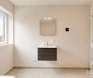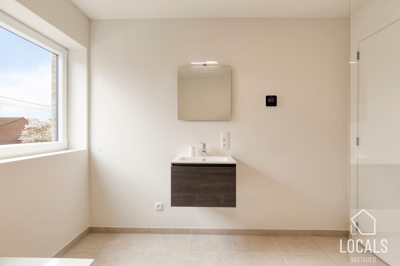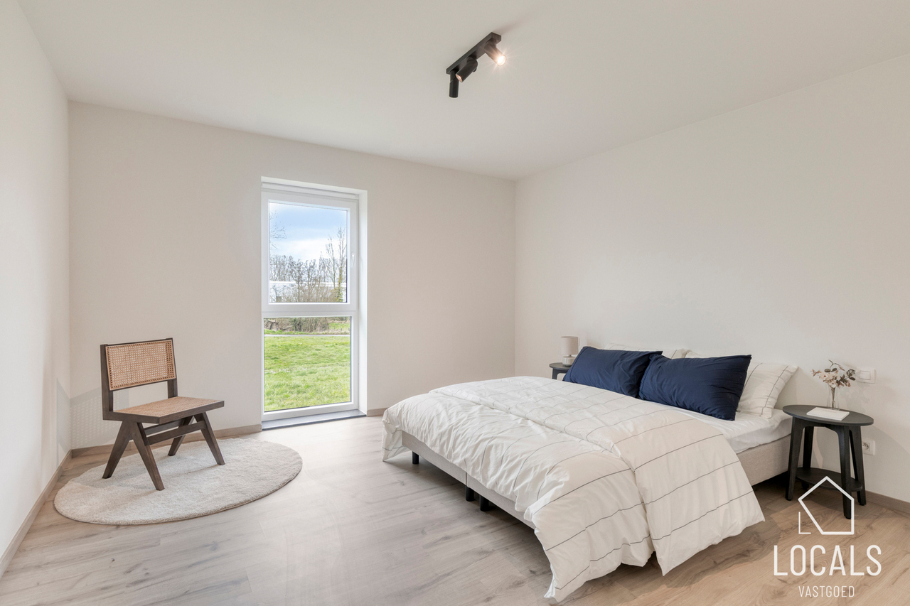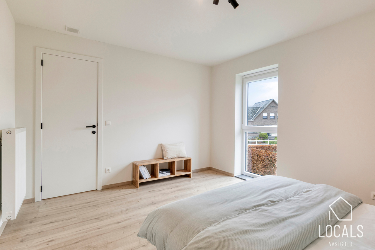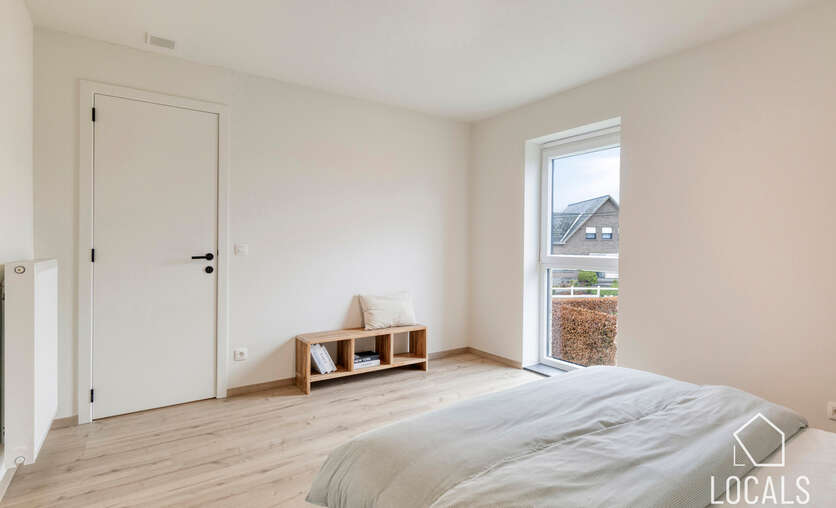 Op de verdieping bevinden zich drie ruime slaapkamers, ideaal voor gezinnen, thuiswerkers of wie graag een hobbykamer voorziet. De badkamer is logisch ingedeeld en biedt alle hedendaagse voorzieningen, terwijl een afzonderlijk toilet extra comfort garandeert. De nachthal verbindt alle ruimtes op een rustige en overzichtelijke manier.