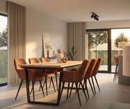 De moderne architectuur zorgt voor een open en ruimtelijk gevoel, met grote raampartijen die de leefruimte en keuken verbinden met de tuin. De woningen zijn instapklaar, toekomstgericht en hoogwaardig afgewerkt.