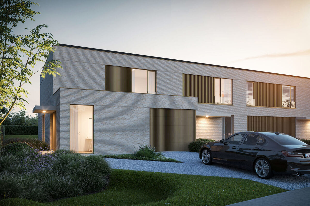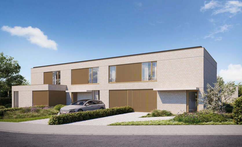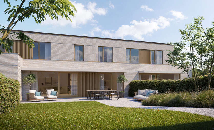 - Drie stijlvolle woningen aan de straatzijde – twee halfopen en één gesloten bebouwing – telkens met twee bouwlagen, een moderne uitstraling en percelen van ca. 425 m².