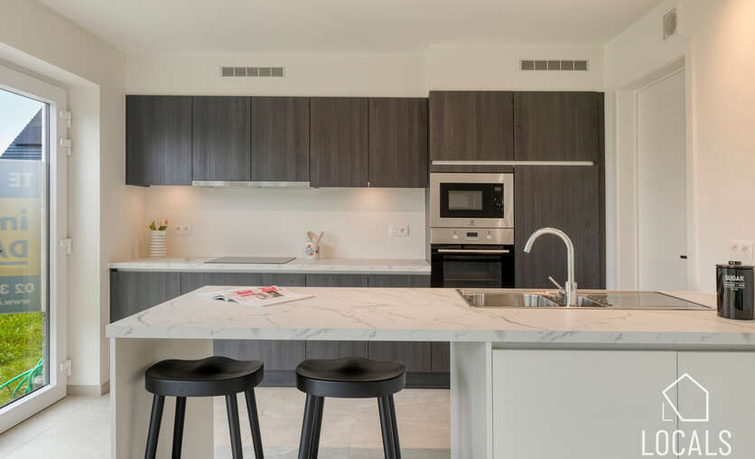 Het gelijkvloers is ontworpen als een open, lichte leefruimte waar functionaliteit en gezelligheid elkaar versterken. De keuken sluit mooi aan op de eethoek, waardoor koken en tafelen een vanzelfsprekende flow krijgen. De zithoek kijkt uit op de tuin en vormt een warme plek om te ontspannen. De inkomhal, het gastentoilet en de inpandige garage zorgen voor extra comfort en praktische meerwaarde in het dagelijkse leven.