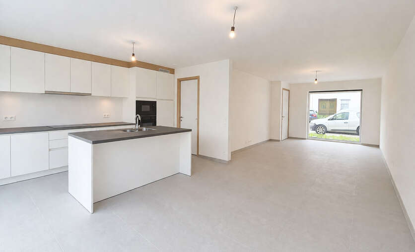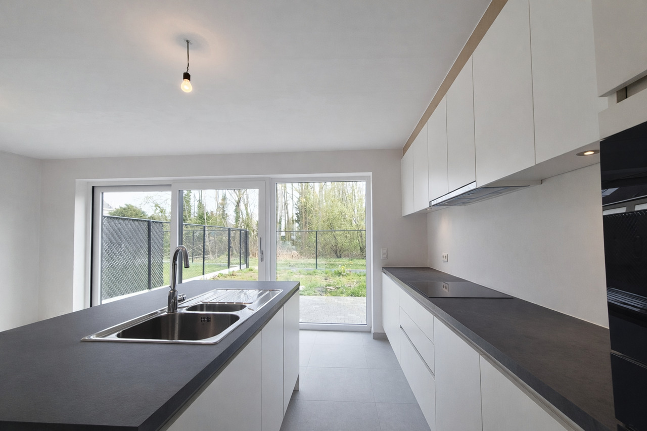 Op de gelijkvloerse verdieping geniet je van een open en lichtrijke leefruimte met geïntegreerde keuken en een gezellige zithoek. Daarnaast is er een praktische, afzonderlijke berging voorzien.