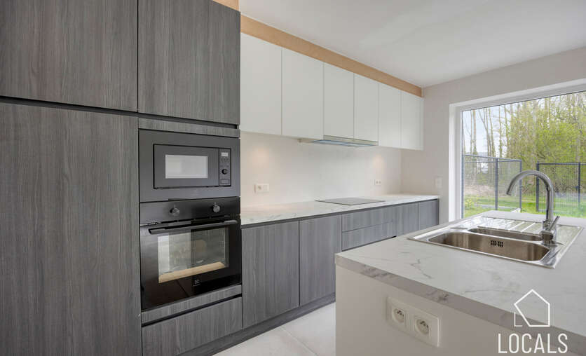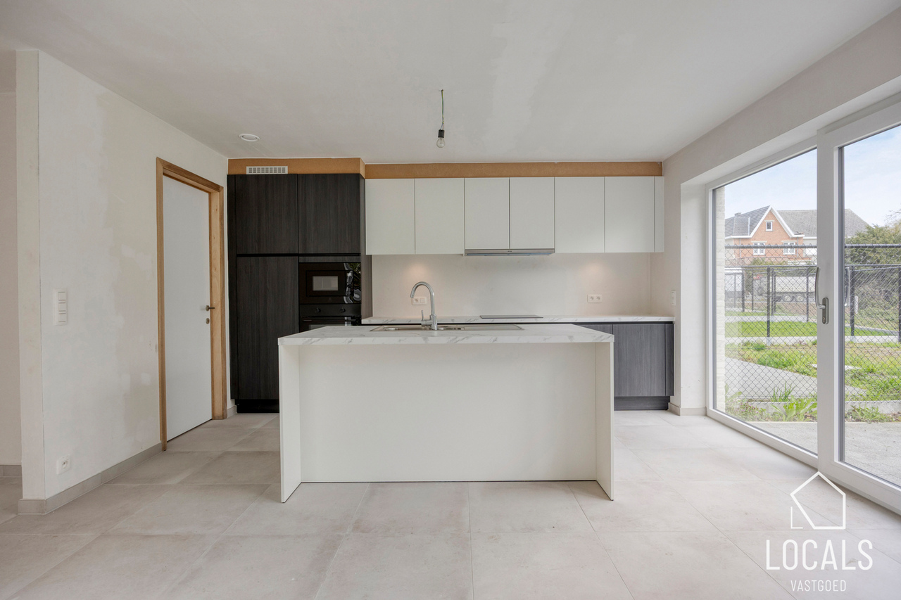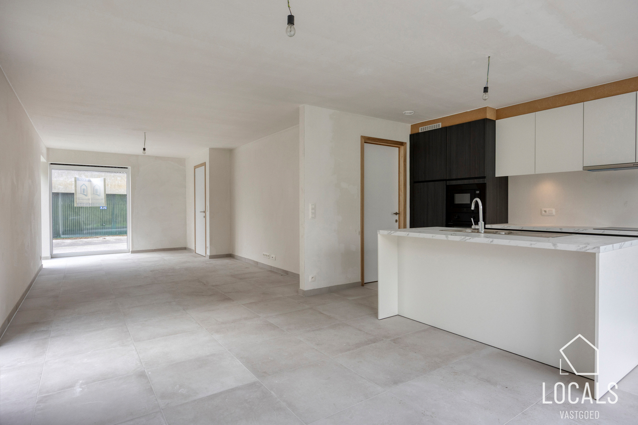 Op de gelijkvloerse verdieping geniet je van een open en lichtrijke leefruimte met geïntegreerde keuken en een gezellige zithoek. Daarnaast is er een praktische, afzonderlijke berging voorzien.