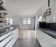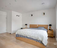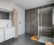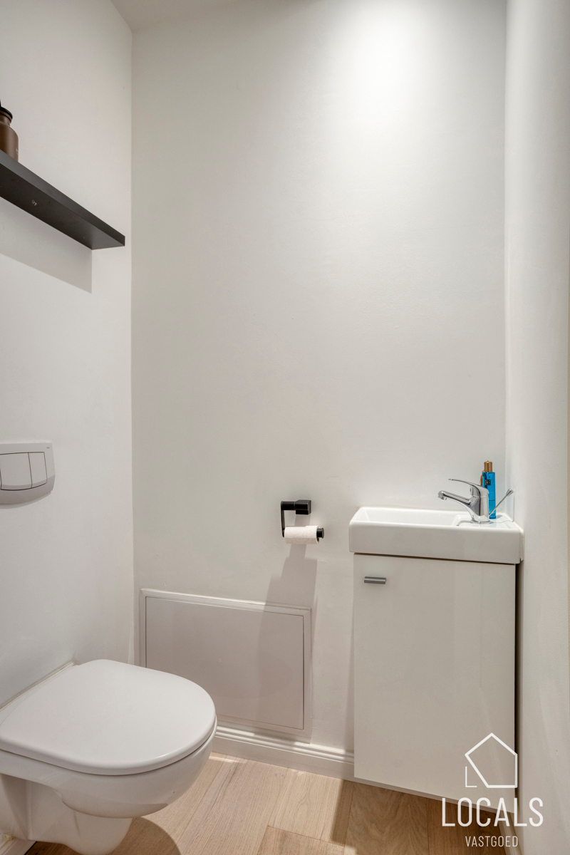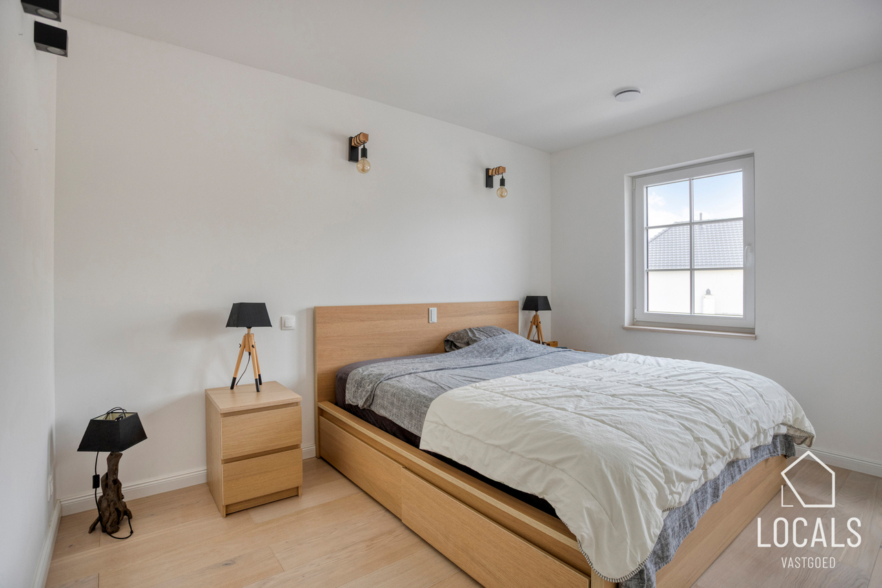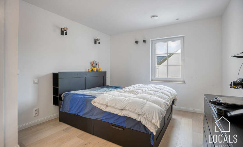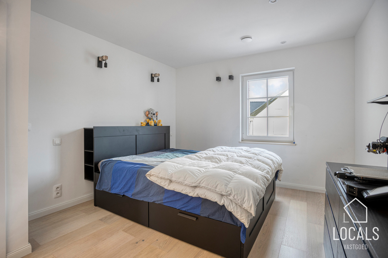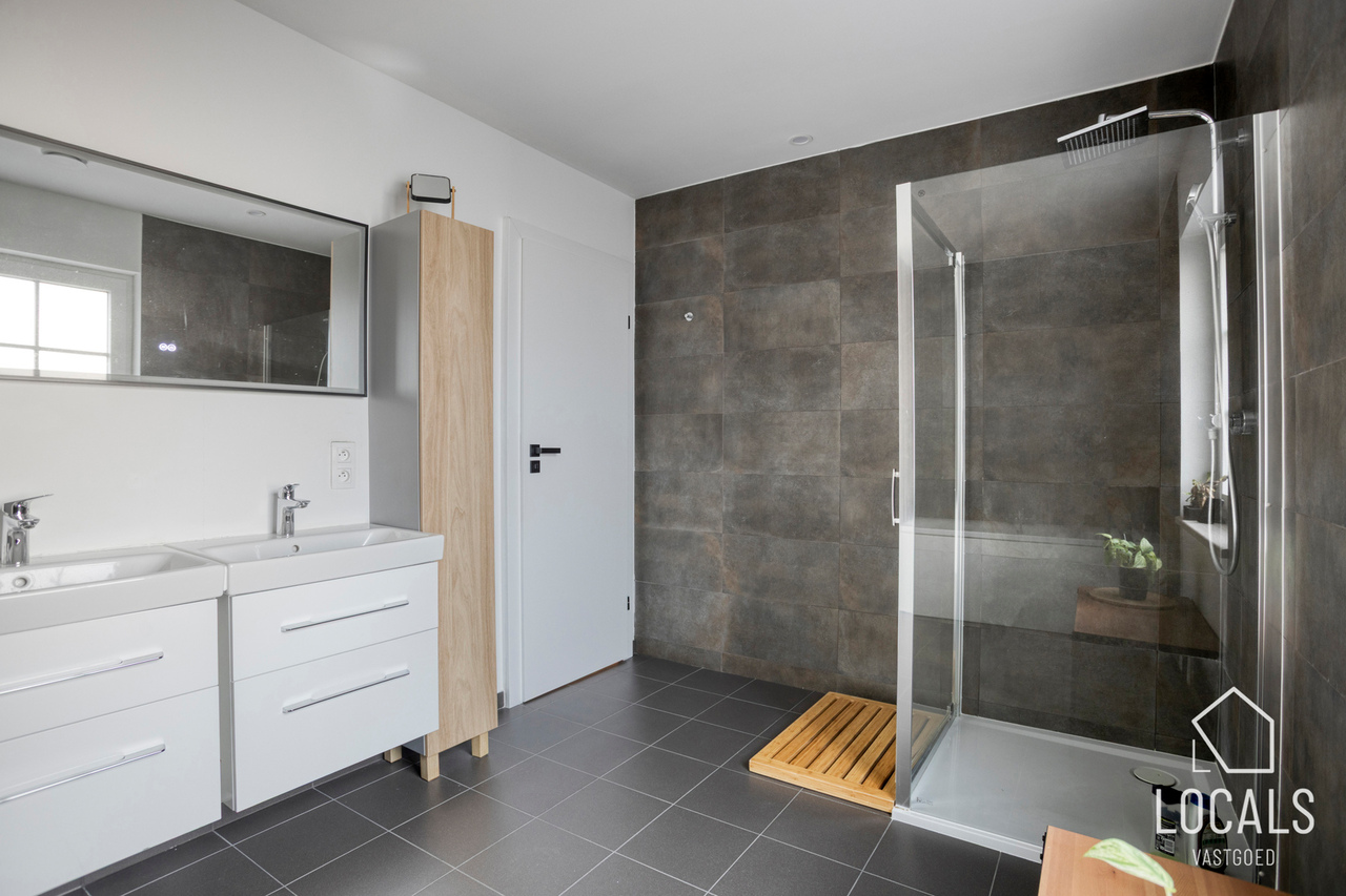 De eerste verdieping telt twee ruime slaapkamers, een volwaardige kinderkamer of dressing, een apart toilet en een moderne badkamer met dubbele lavabo, ligbad en inloopdouche.