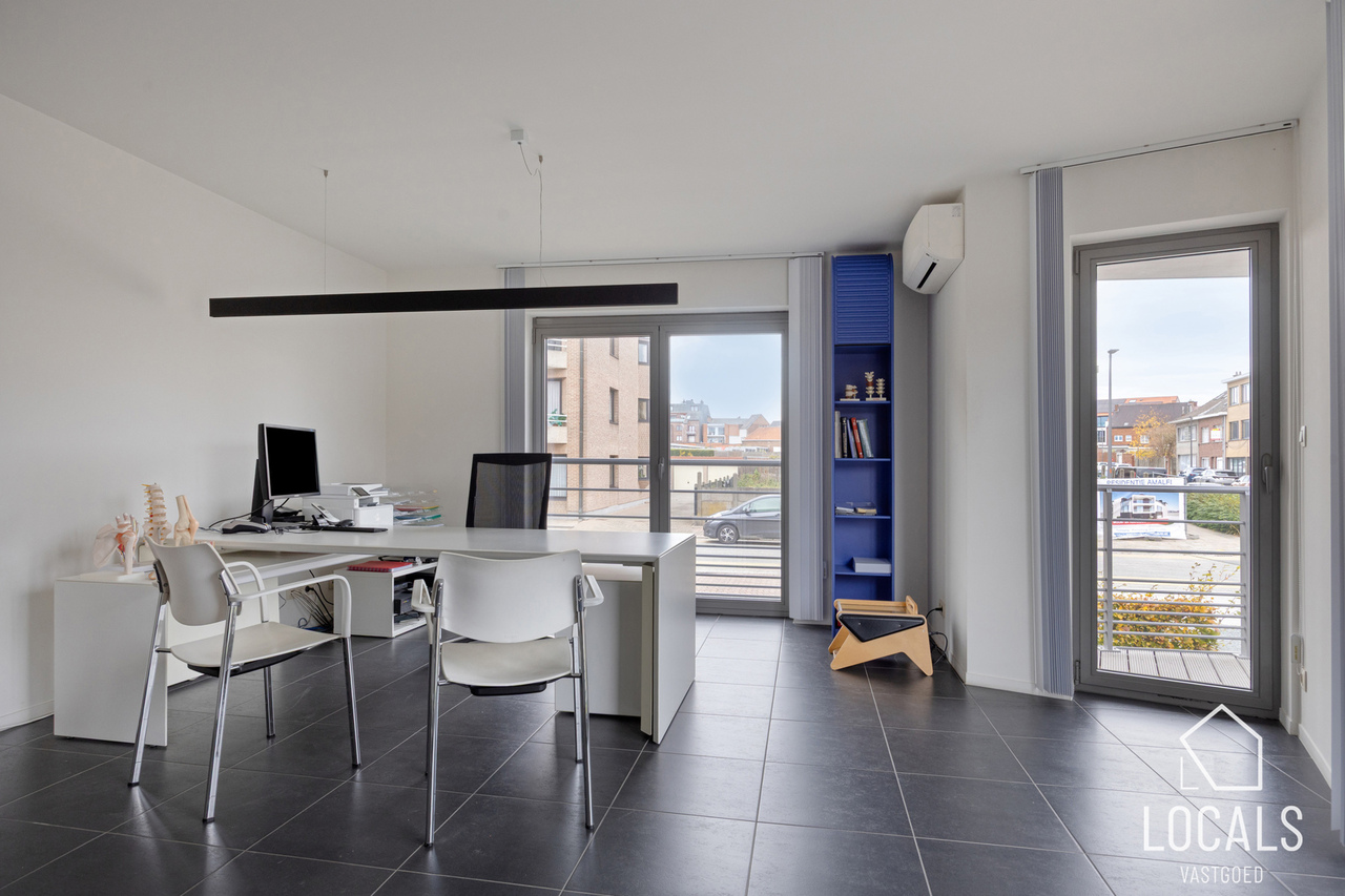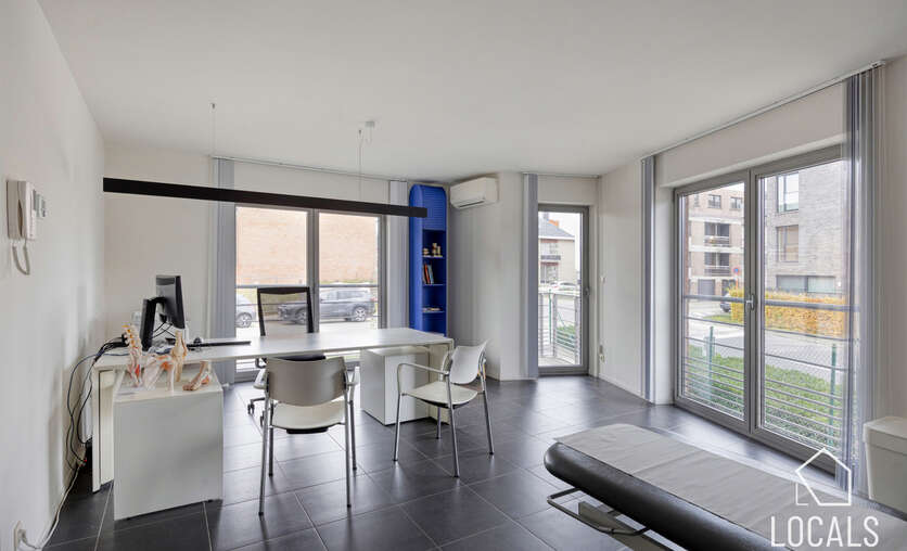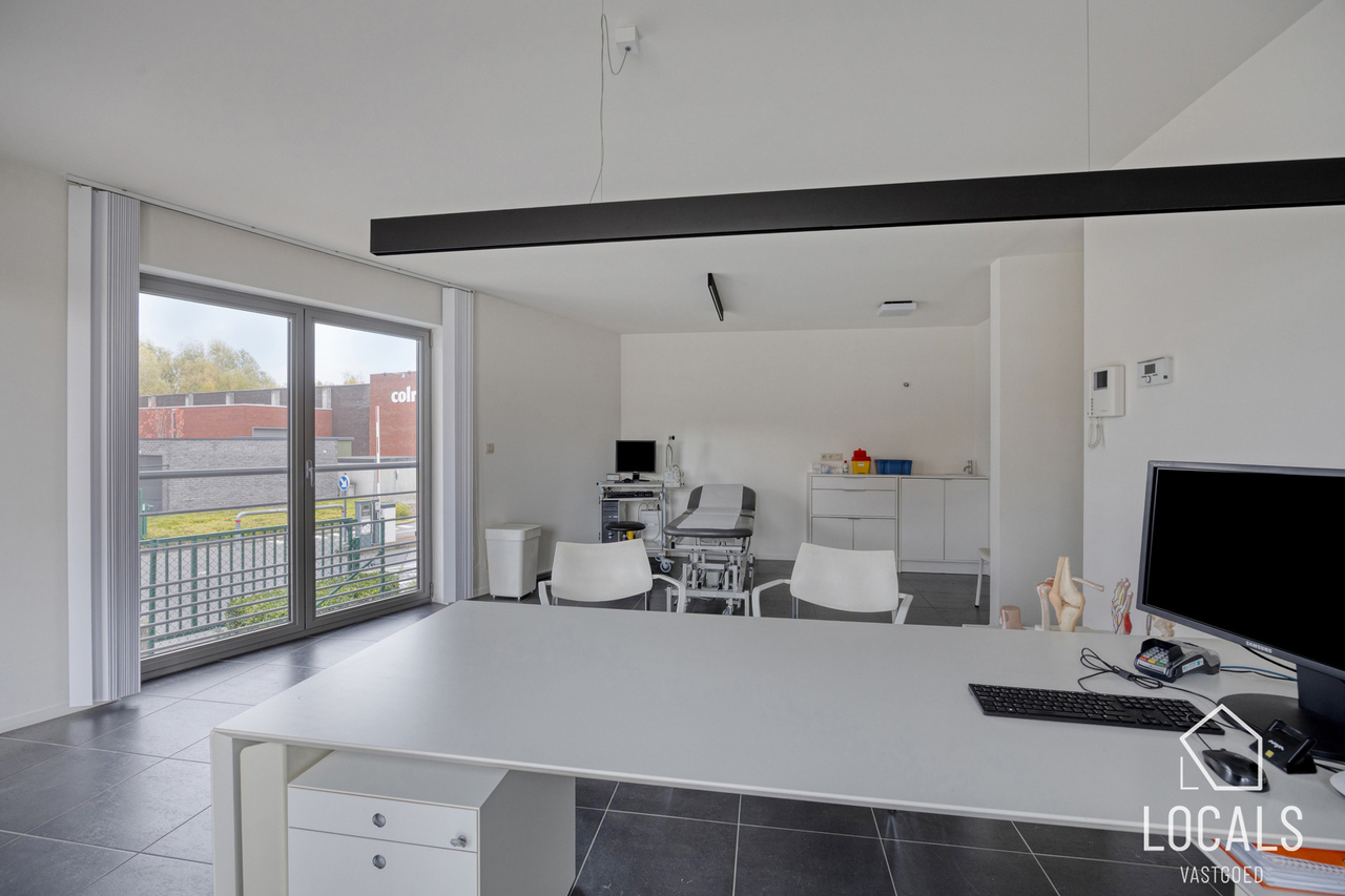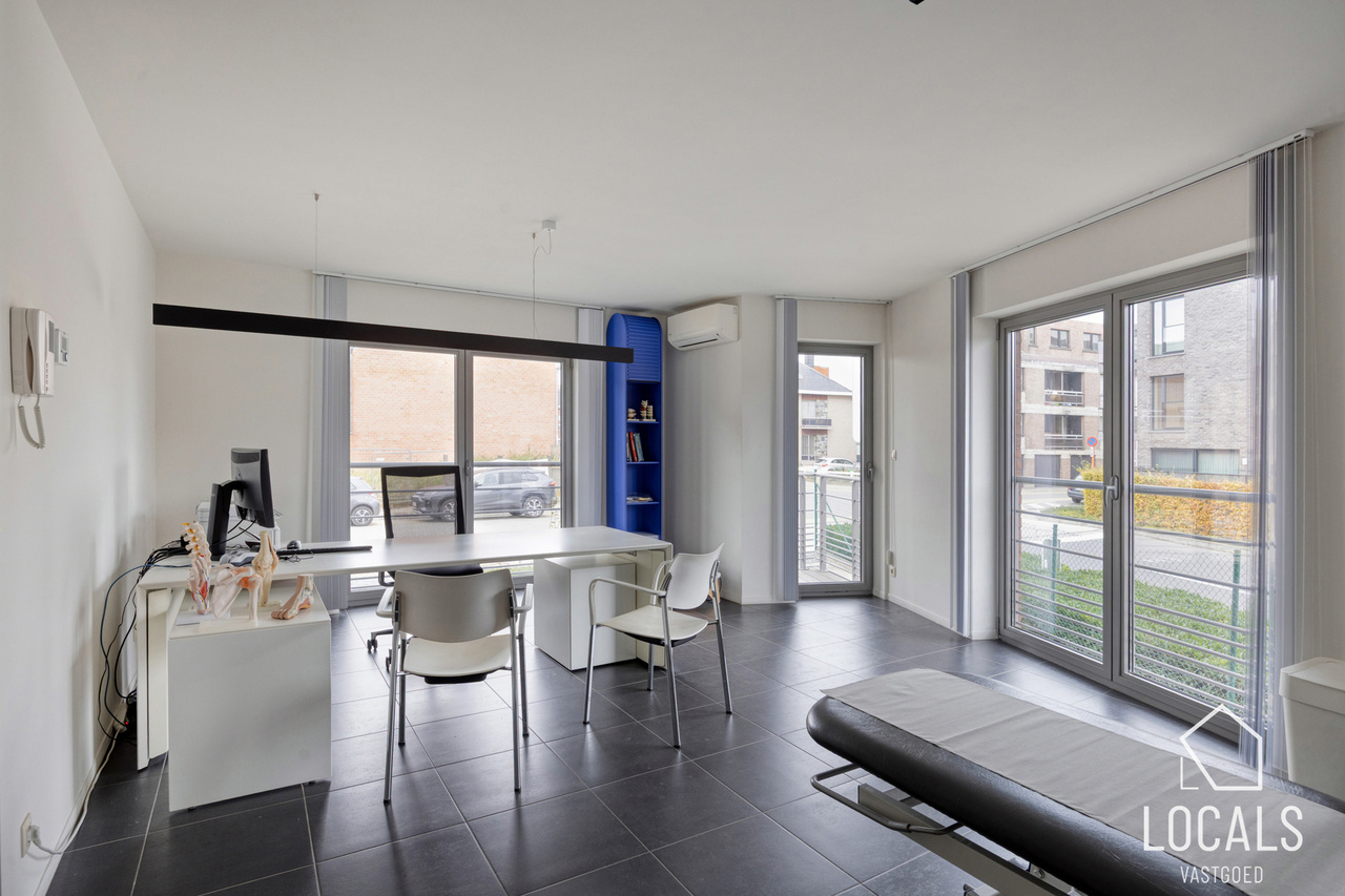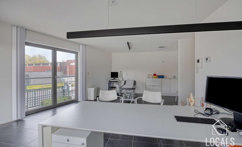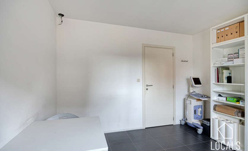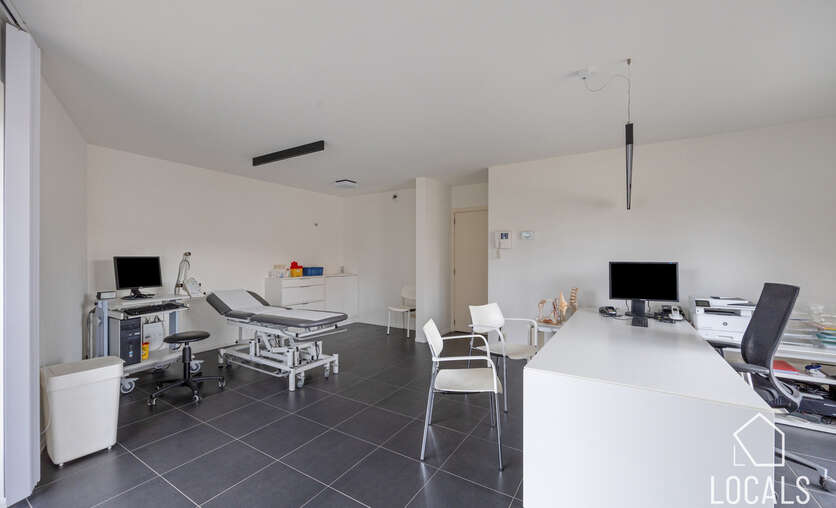 Momenteel is de ruimte ingericht als dokterspraktijk, maar ze kan eenvoudig dienen voor een kantoor, vrij beroep of andere commerciële invulling.