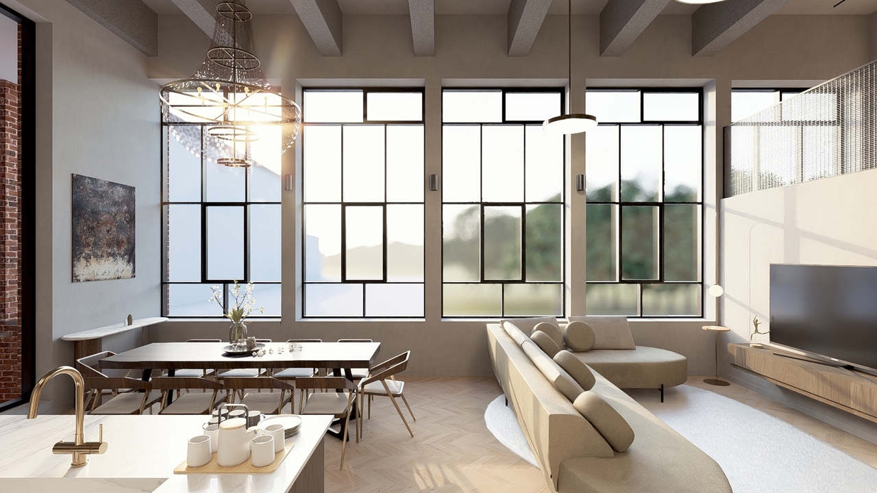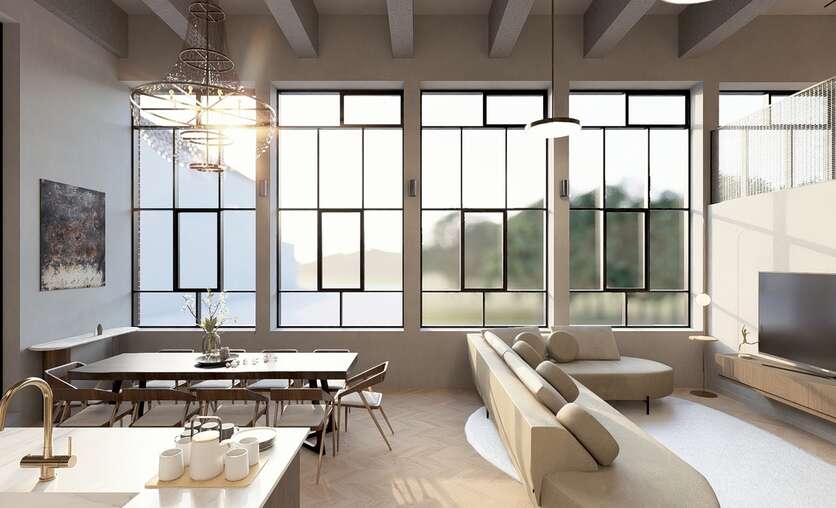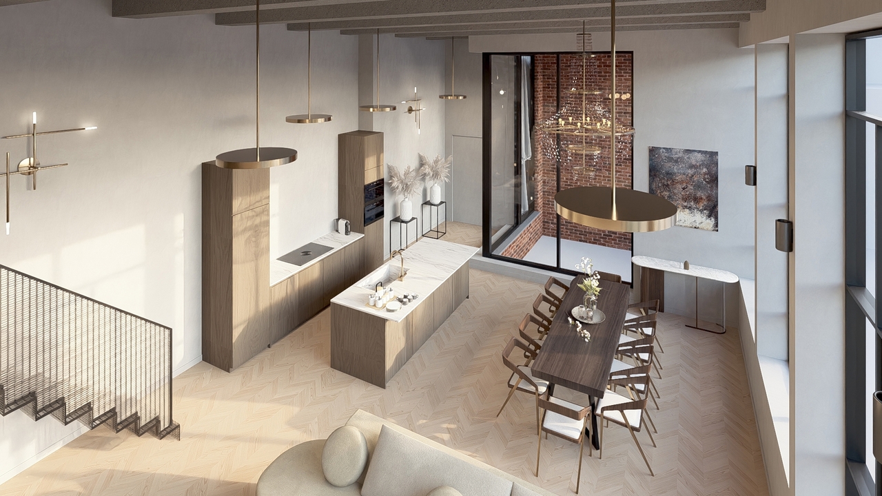 Elk appartement geniet een hoge afwerkingsgraad en behoudt zijn industriële karakter dankzij de verticale raampartijen en hoge plafonds. De architect en bouwheer zorgden voor een efficiënte en hedendaagse indeling waardoor elk appartement een ruimtelijk gevoel en fijne lichtinval heeft.