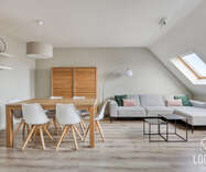 Verder is er een leuke leefruimte met aangrenzende open keuken aanwezig.