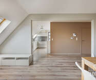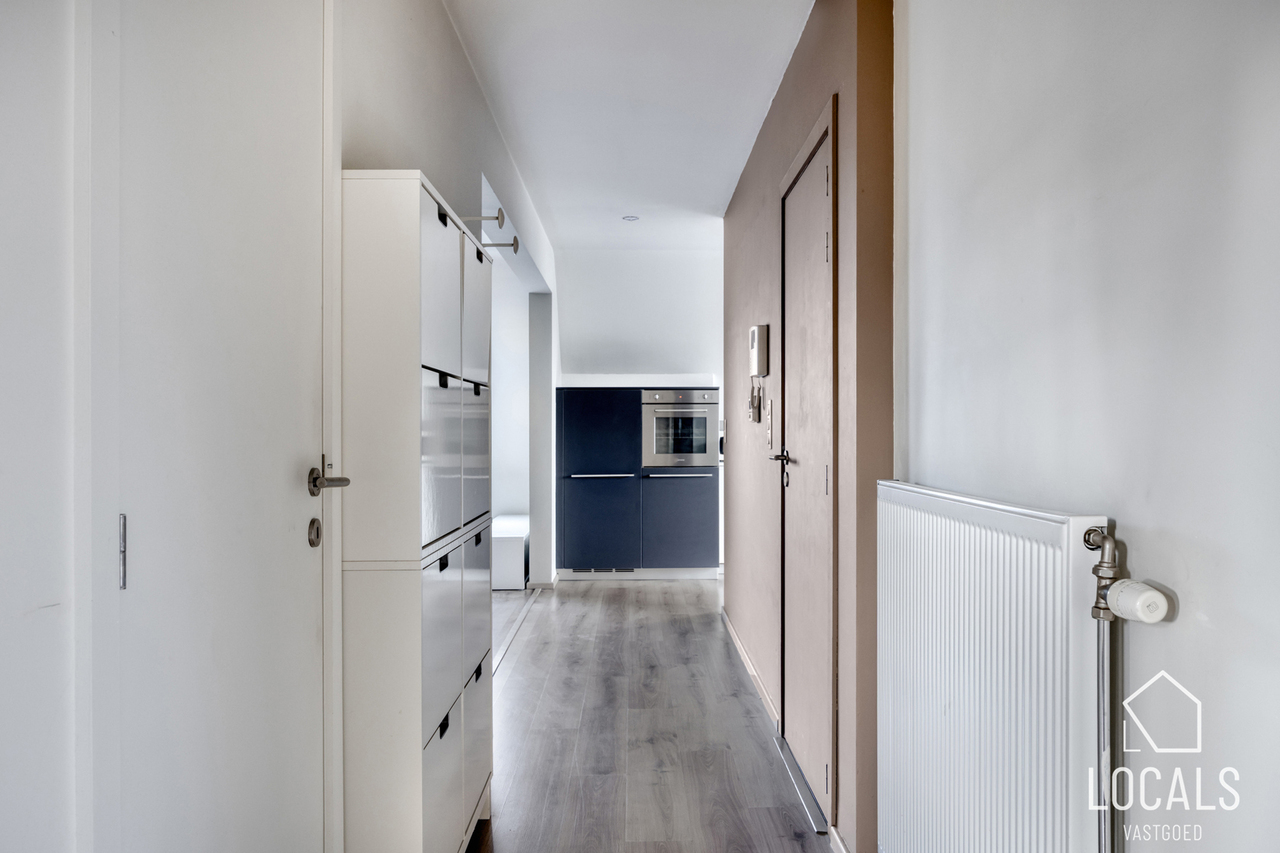 Bij binnenkomst van het appartement word je meteen verwelkomd door een open inkomhal. Dankzij deze open inkomhal, heb je binnen het appartement ook een extra ruim gevoel.