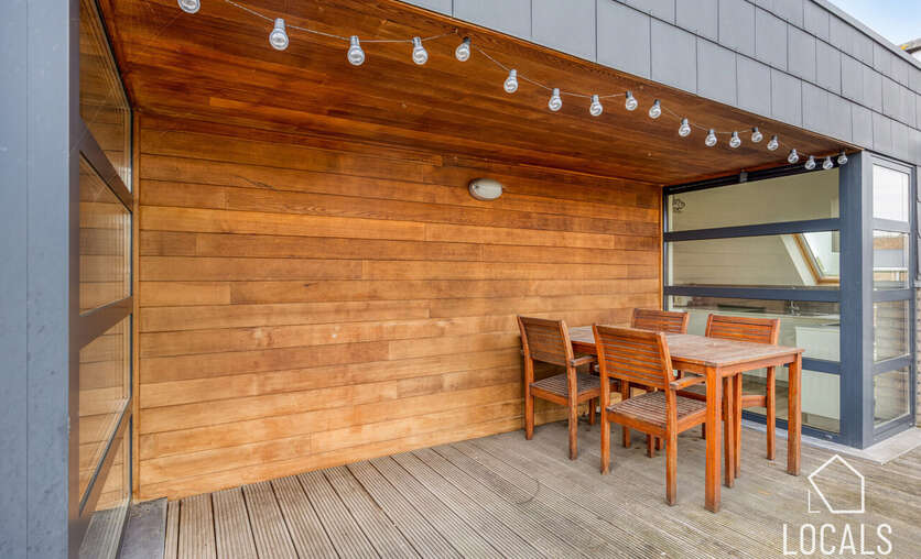 Vertoeven kan op het heerlijke terras van zo'n 19m². Hier kan je dus zowel jouw grote tafel kwijt, als een ligzetel, waarop je kan genieten in de zomer.