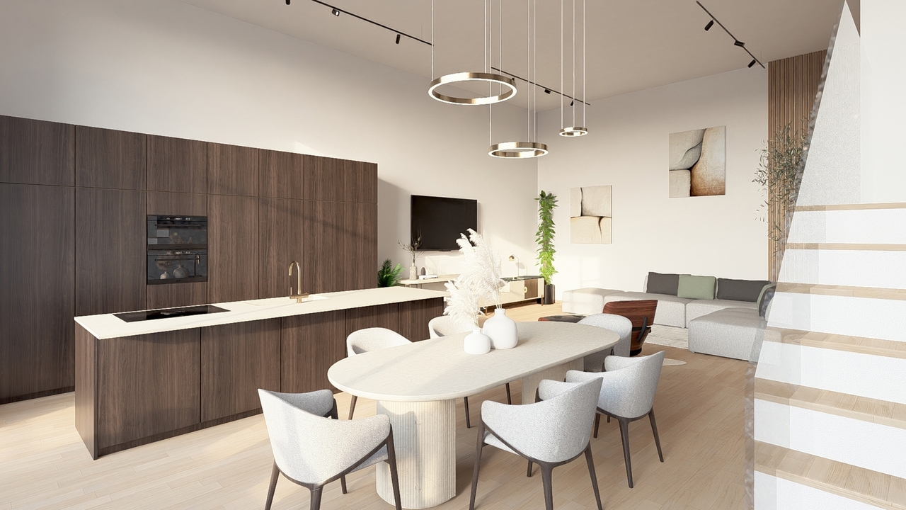 Elk appartement geniet een hoge afwerkingsgraad en behoudt zijn industriële karakter dankzij de verticale raampartijen en hoge plafonds. De architect en bouwheer zorgden voor een efficiënte en hedendaagse indeling waardoor elk appartement een ruimtelijk gevoel en fijne lichtinval heeft.