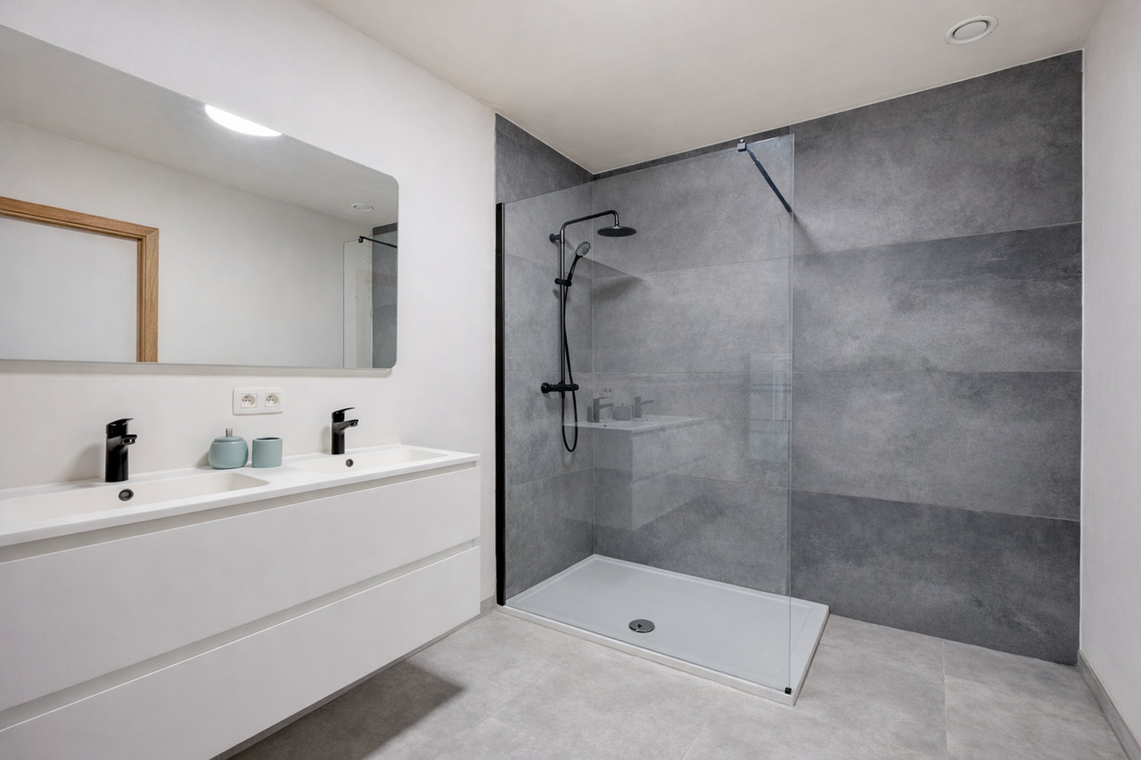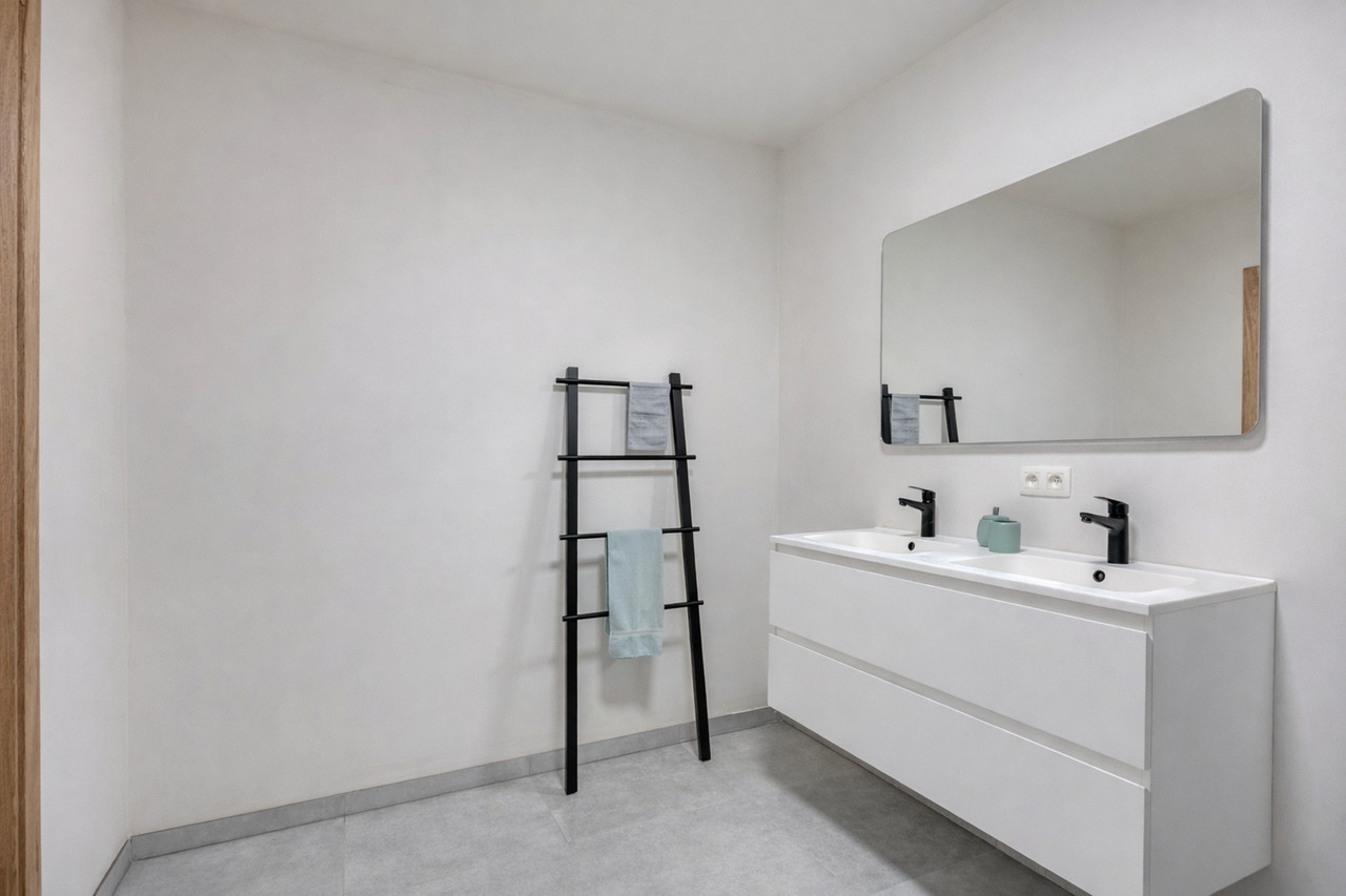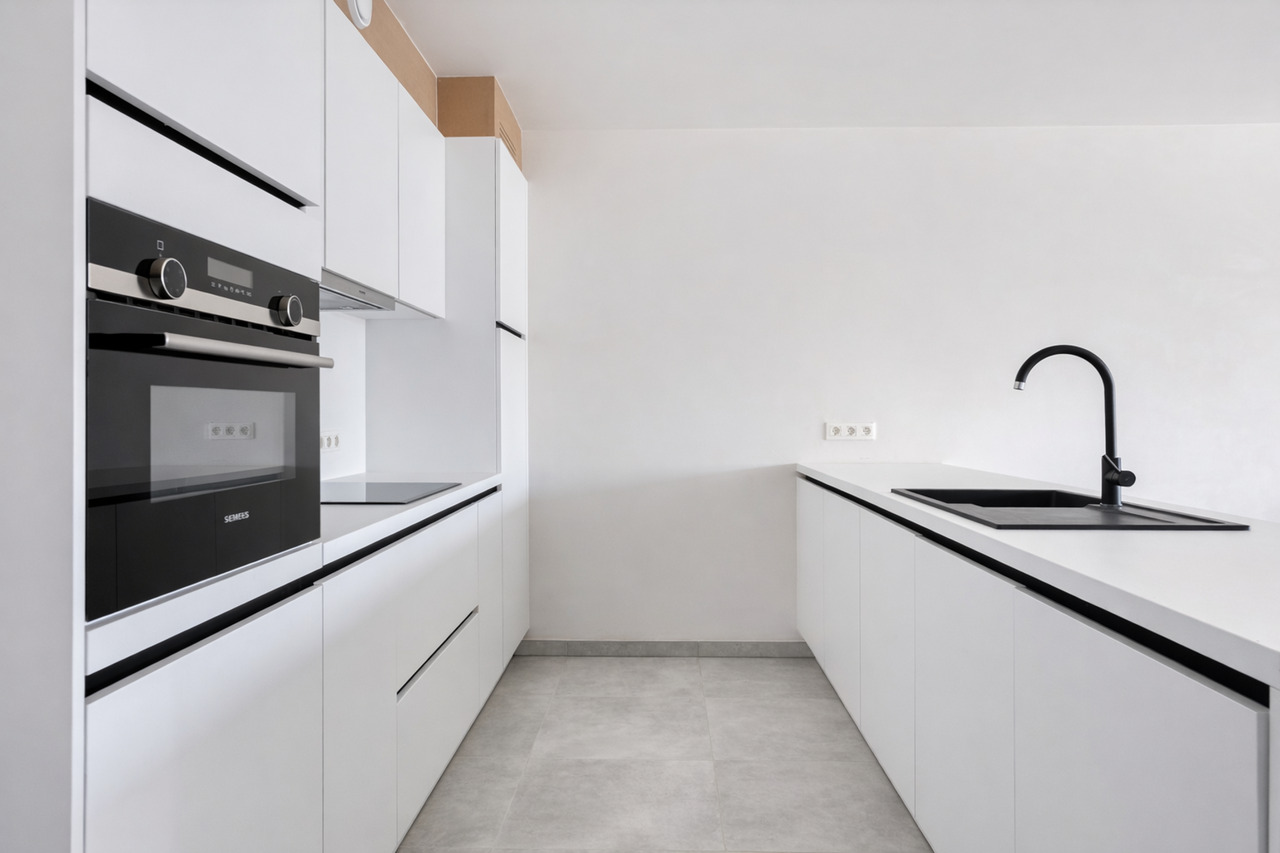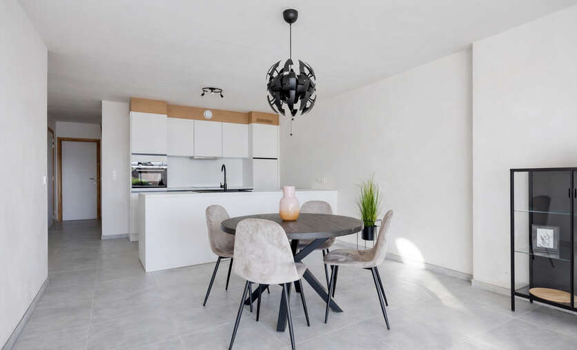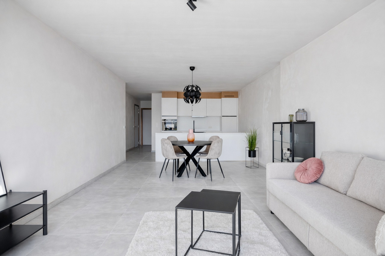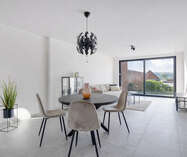 2 Nieuwbouwappartementen in residentie "Jacqueline", een kleinschalige residentie met 8 eenheden. Deze ligt op een toplocatie met uitvalbasis naar alle voorzieningen, winkels en aansluiting naar hoofdwegen. De 2 gelijkvloerse appartementen zijn kwalitatief ingericht en beschikken elk over 5 zonnepanelen en een warmtepomp. Ze omvatten elk 1 slaapkamer, een ruime lichtrijke leefruimte, een geïnstalleerde keuken, badkamer met wastafel en douche, een berging en een afzonderlijk toilet.